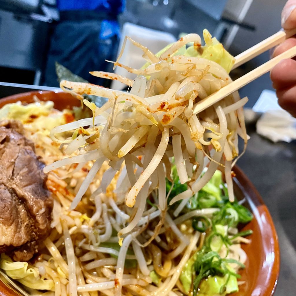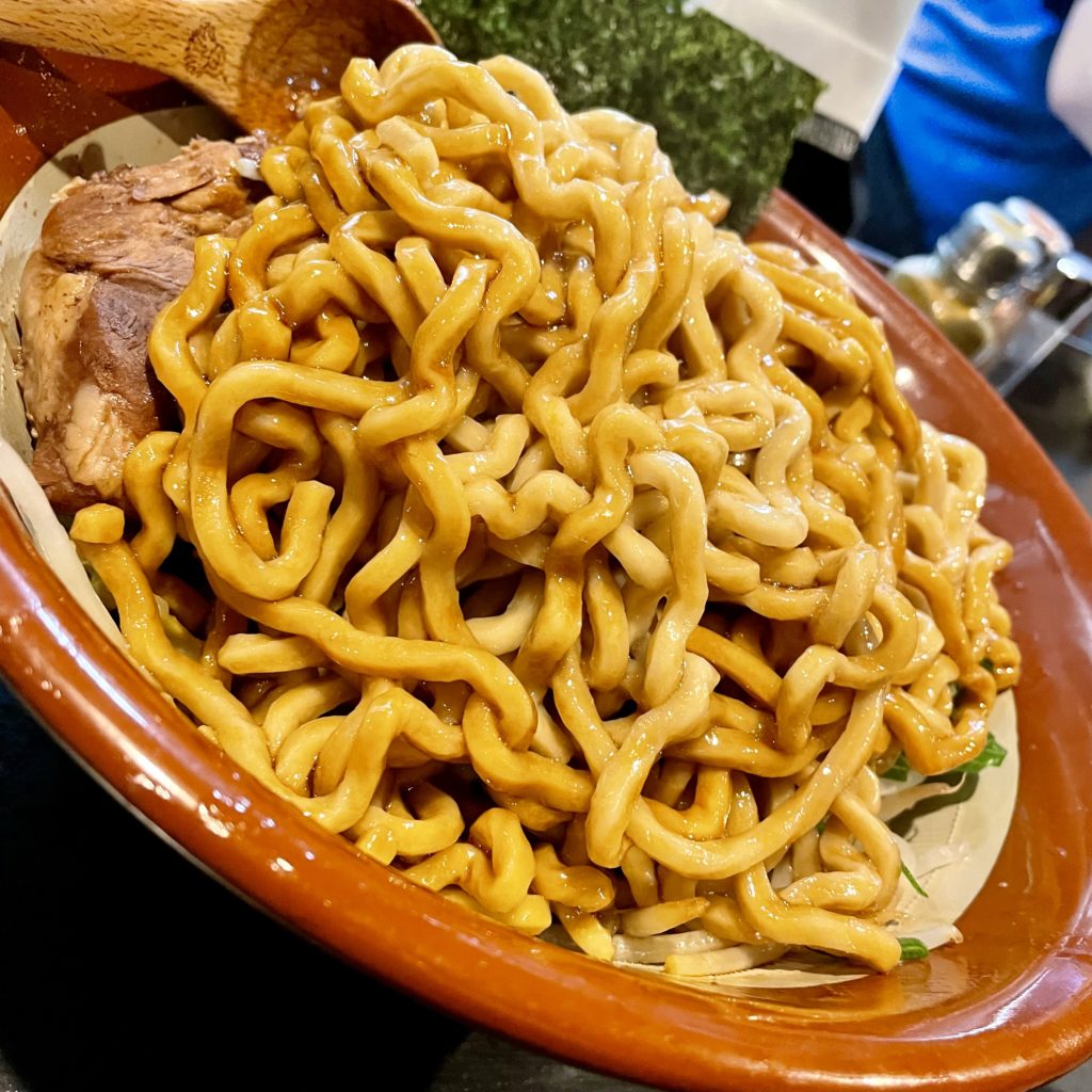 ファンの間でヤカラ麺と呼称されるまぜそばの麺は、他に類を見ないTHE 剛麺!