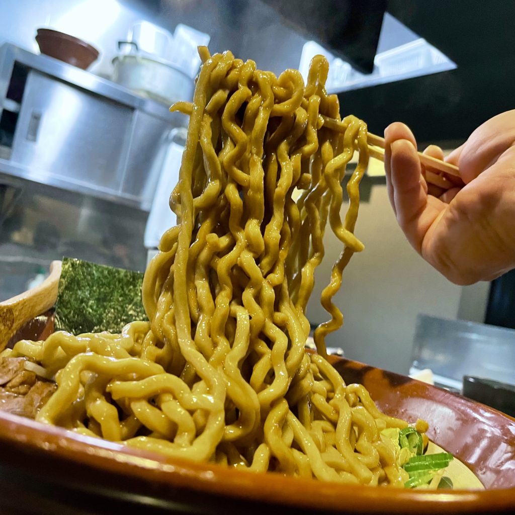 咀嚼を阻むように口内で暴れ狂うその食感は、まるで暴竜のごとき唯一無二の自家製麺!