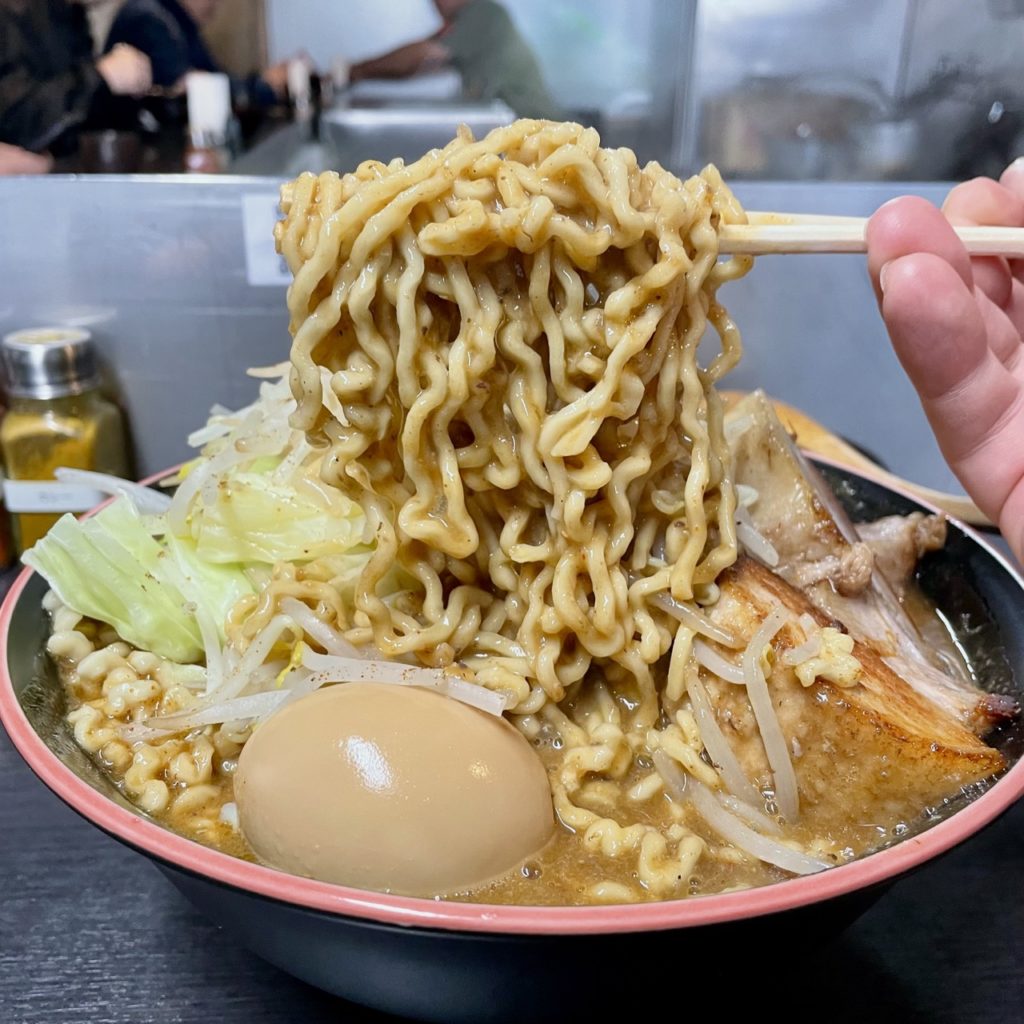 軍団さんといえば、つけ麺もまぜそばも他に類を見ない剛麺で有名ですが、こちらは見た目よりも柔らかめのチューニング。