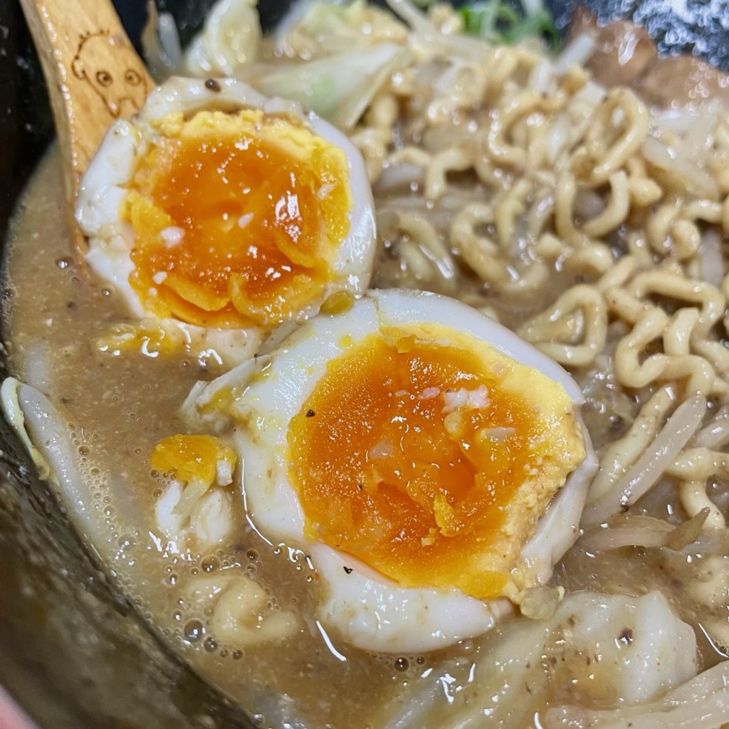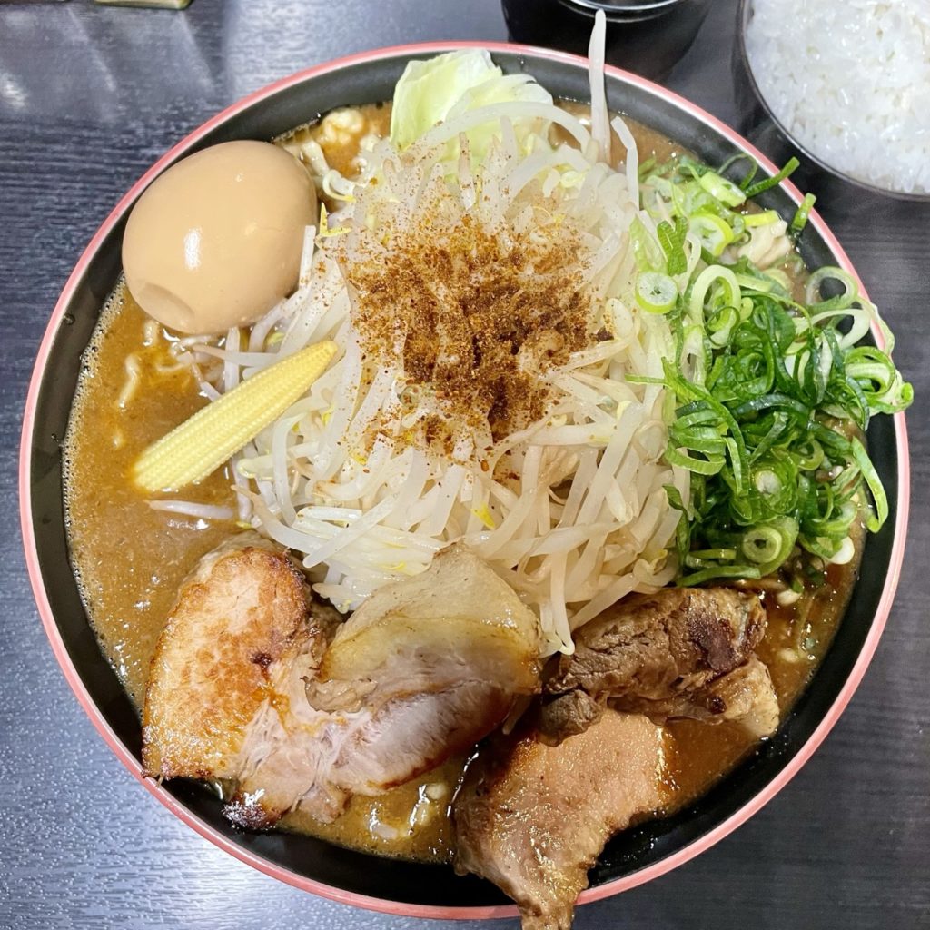 具材は肉・味玉・ヤングコーン・もやし・キャベツ・ネギとバラエティ豊か!