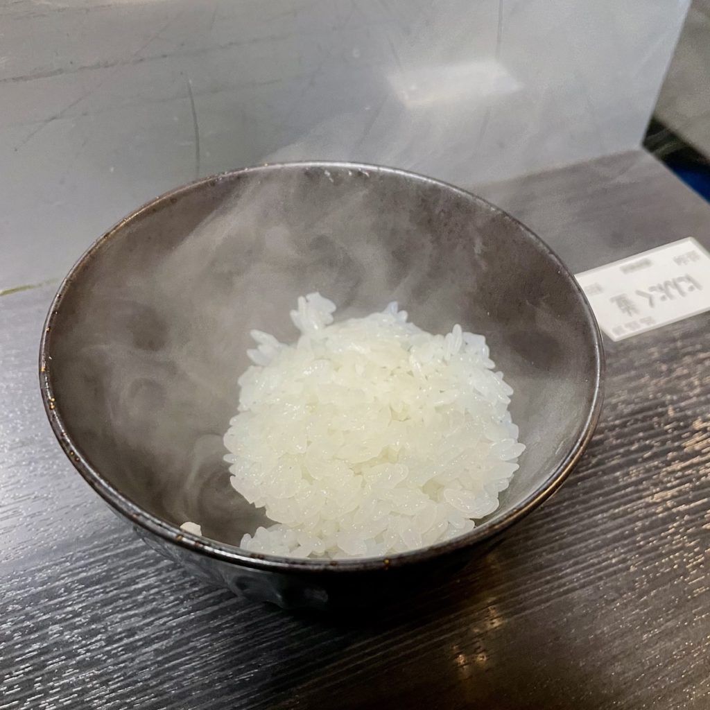 ちょうど2つ目の炊飯器が炊き上がったタイミングで、「10秒以内に食べて!」と軍団長が直々にごはんをよそってくれました笑