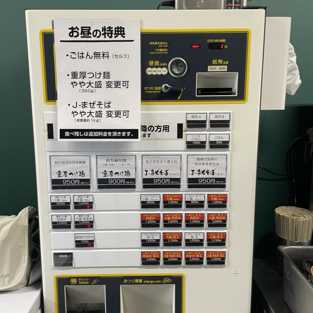 お昼はやや大盛りへの変更が無料、セルフのごはんが無料という特典があります。