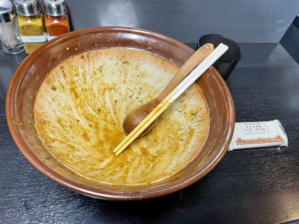 濃厚かつ重めのカレー味なので、麺量以上のボリュームを感じますねー!