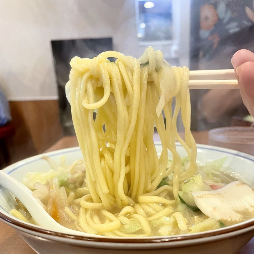 やや平打ちっぽい、プリンとした食感の麺でスープによく合ってましたね。