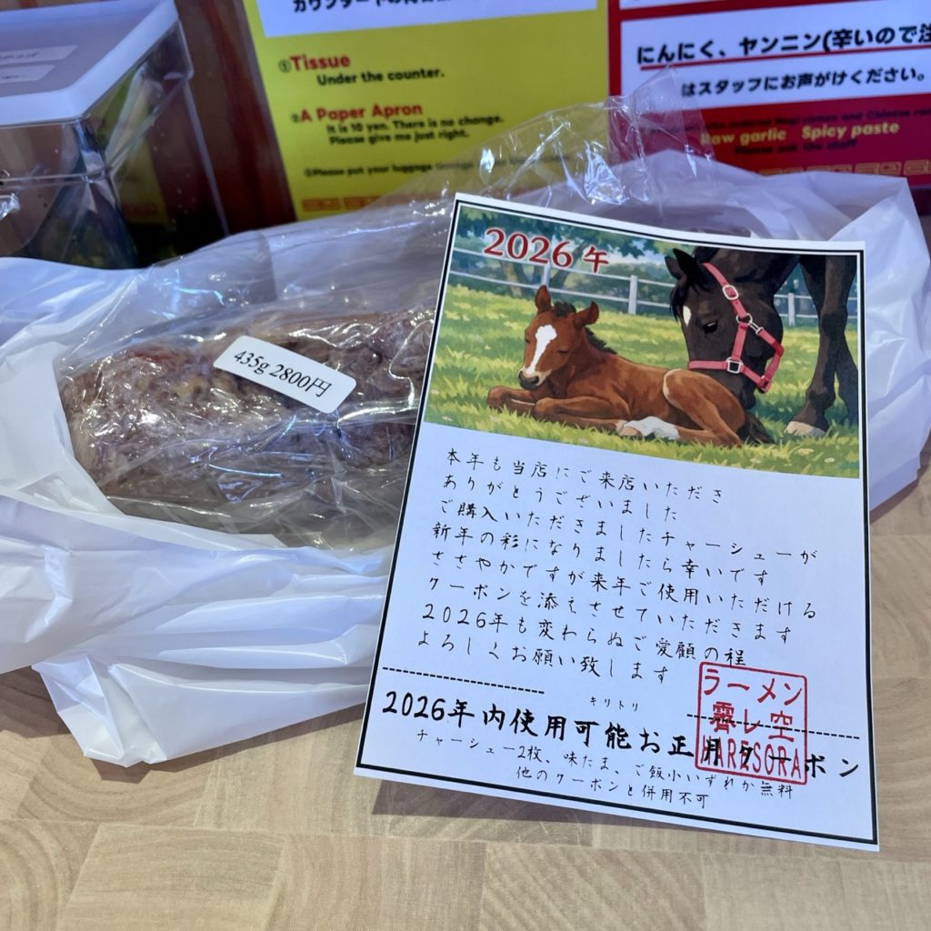 持ち帰りチャーシューは1,000円のデポジット制でしたが、特に引換券などは無く、店主さんが「顔を覚えています」とのことでした。