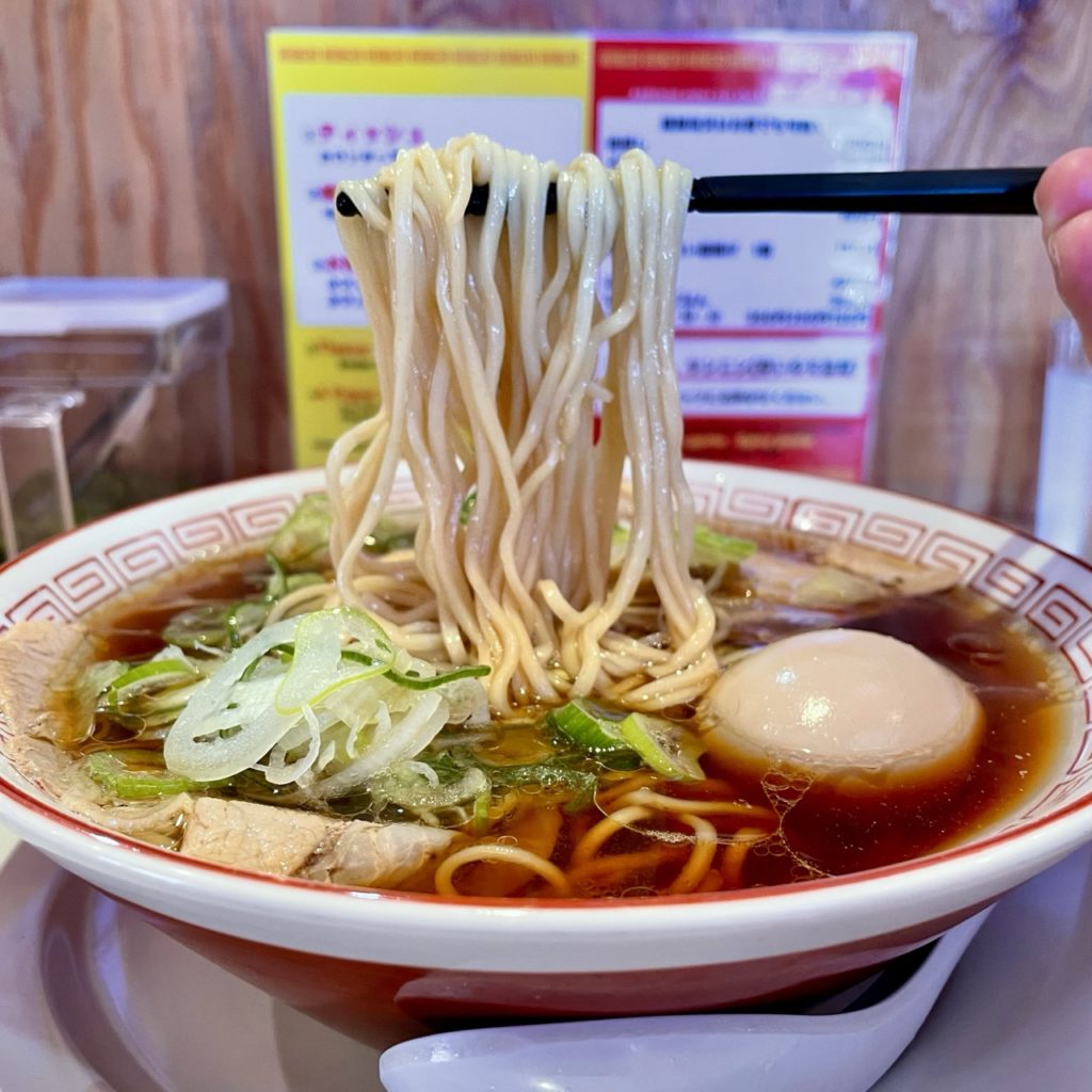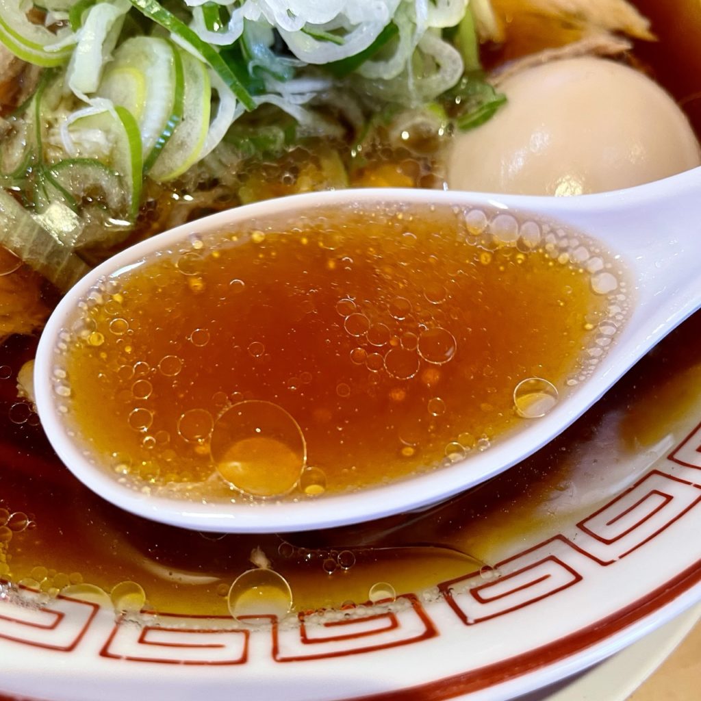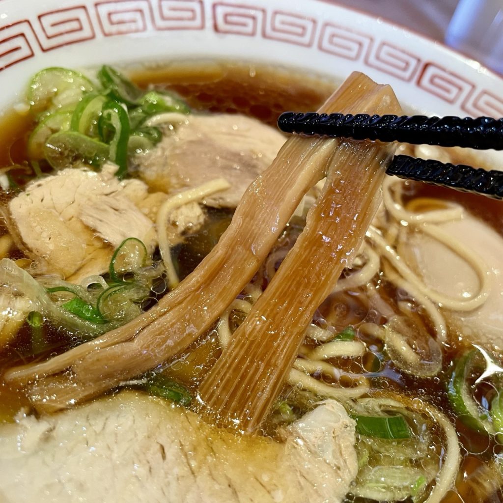 キリッとシャープな醤油が効いたスープは、あっさりしつつも輪郭がハッキリして老若男女に受けそうな味だと思います。