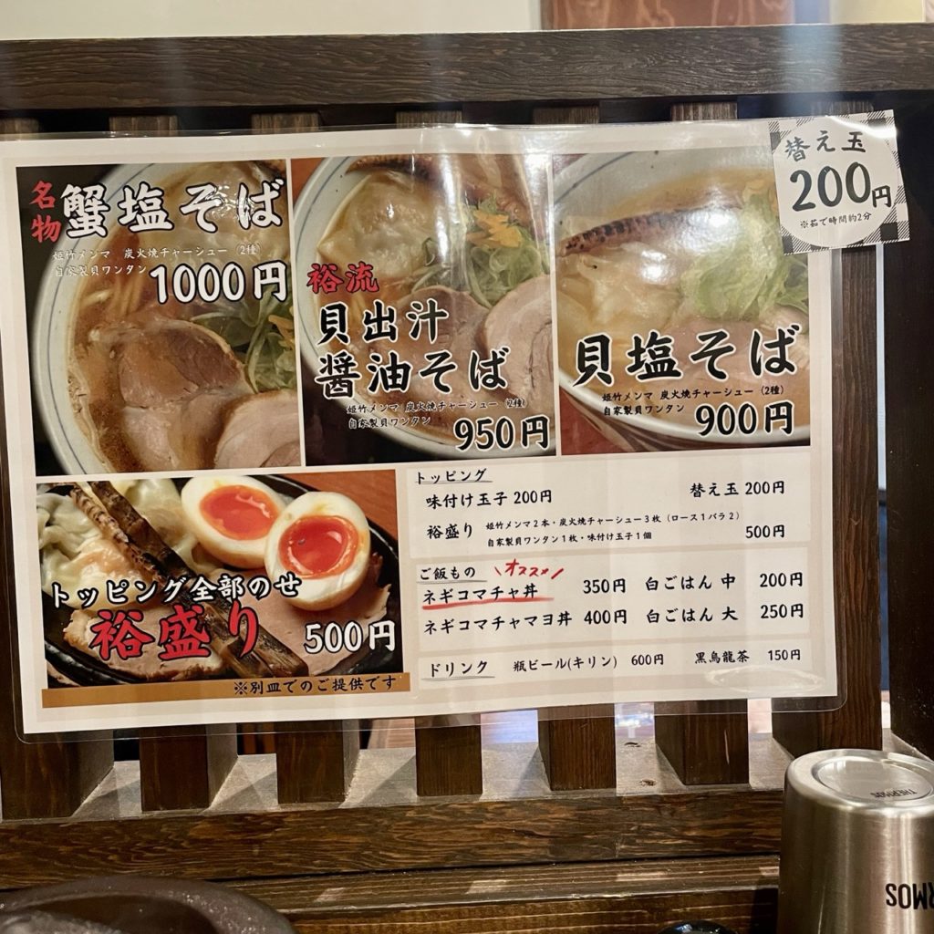 貝出汁醤油そば・貝塩そばの貝出汁系も京都時代からあったメニューのようです。