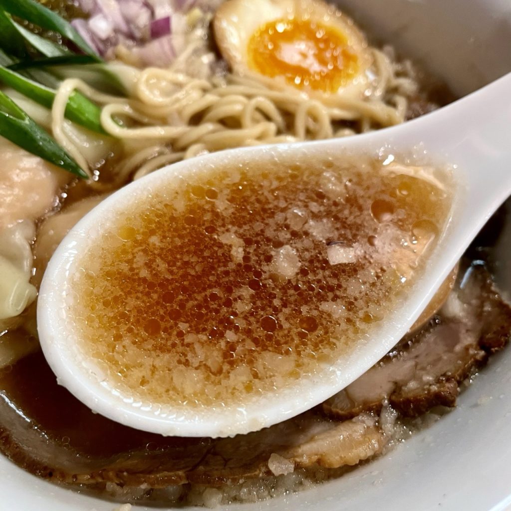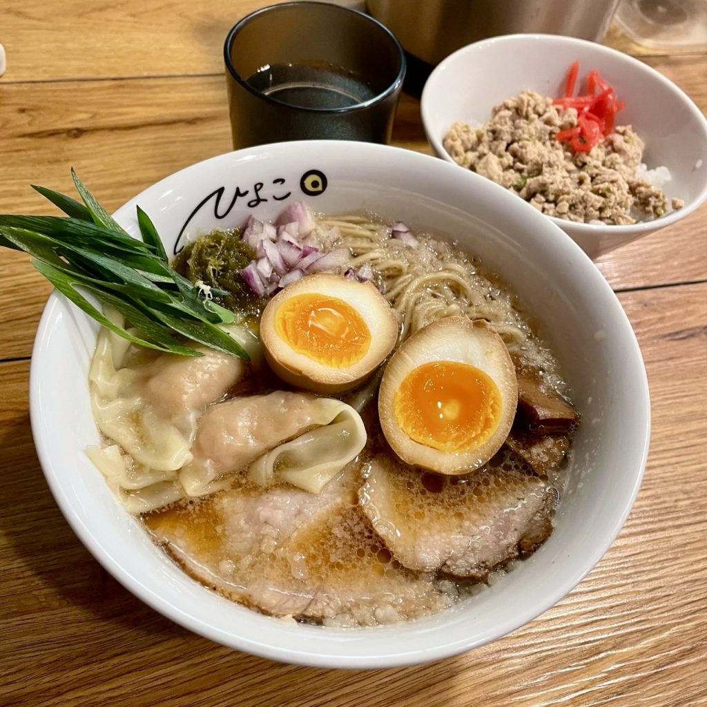 今回は中華そばに味玉とワンタンが追加された贅沢中華そばをチョイス!ここまで5kmは歩いたので3軒目でもご飯もの余裕でした!