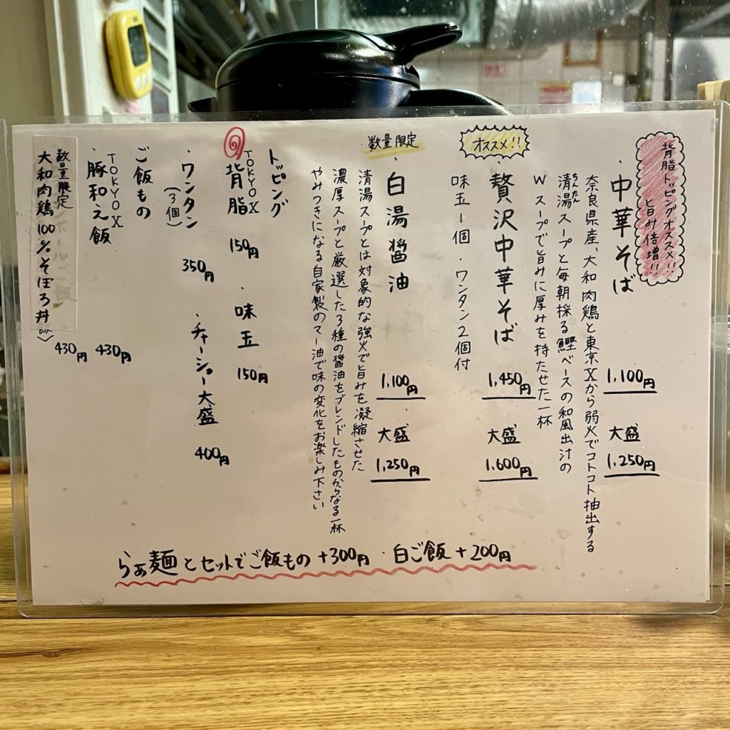 麺メニューは清湯スープの中華そばと、白湯スープである白湯醤油の2種類。