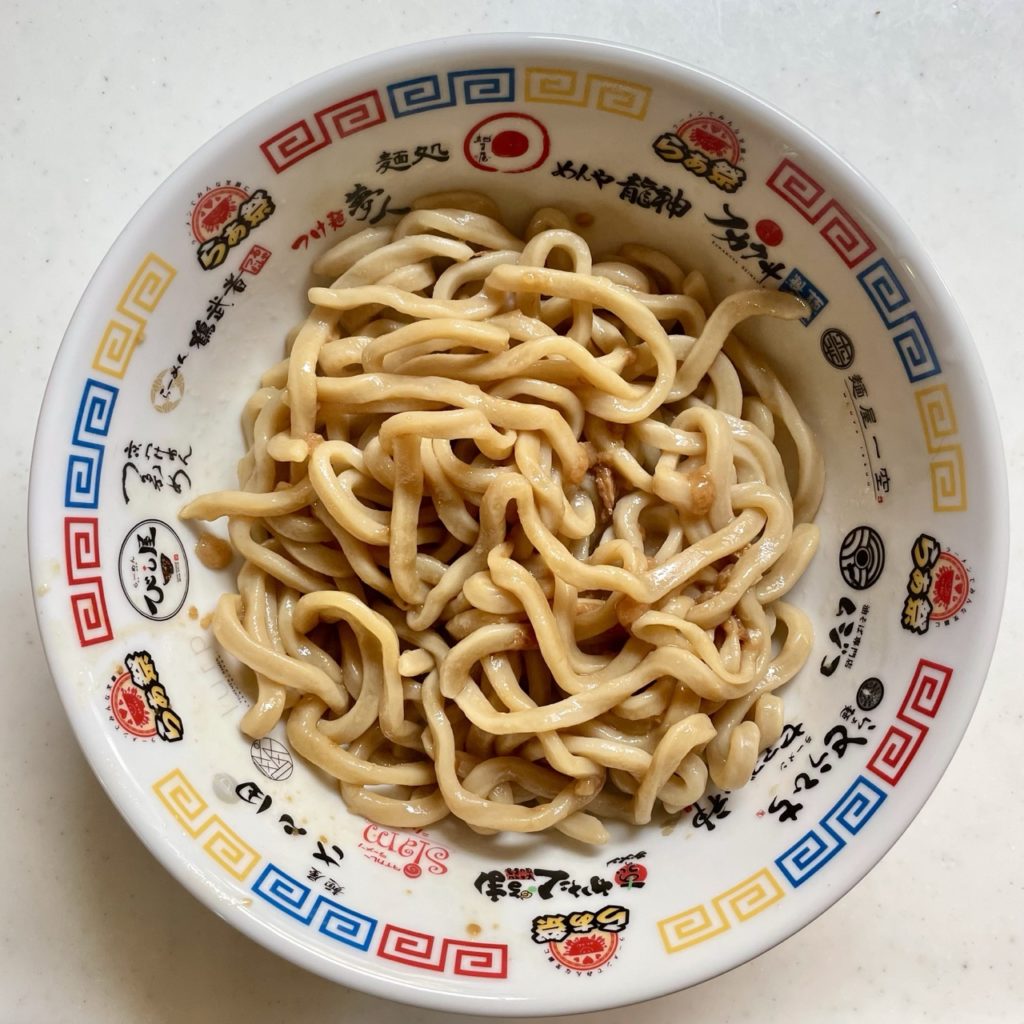 15分ぐらい茹でてもなお強いコシと弾力を保ってる!すんごい密度の高い麺なんだろうなぁ。