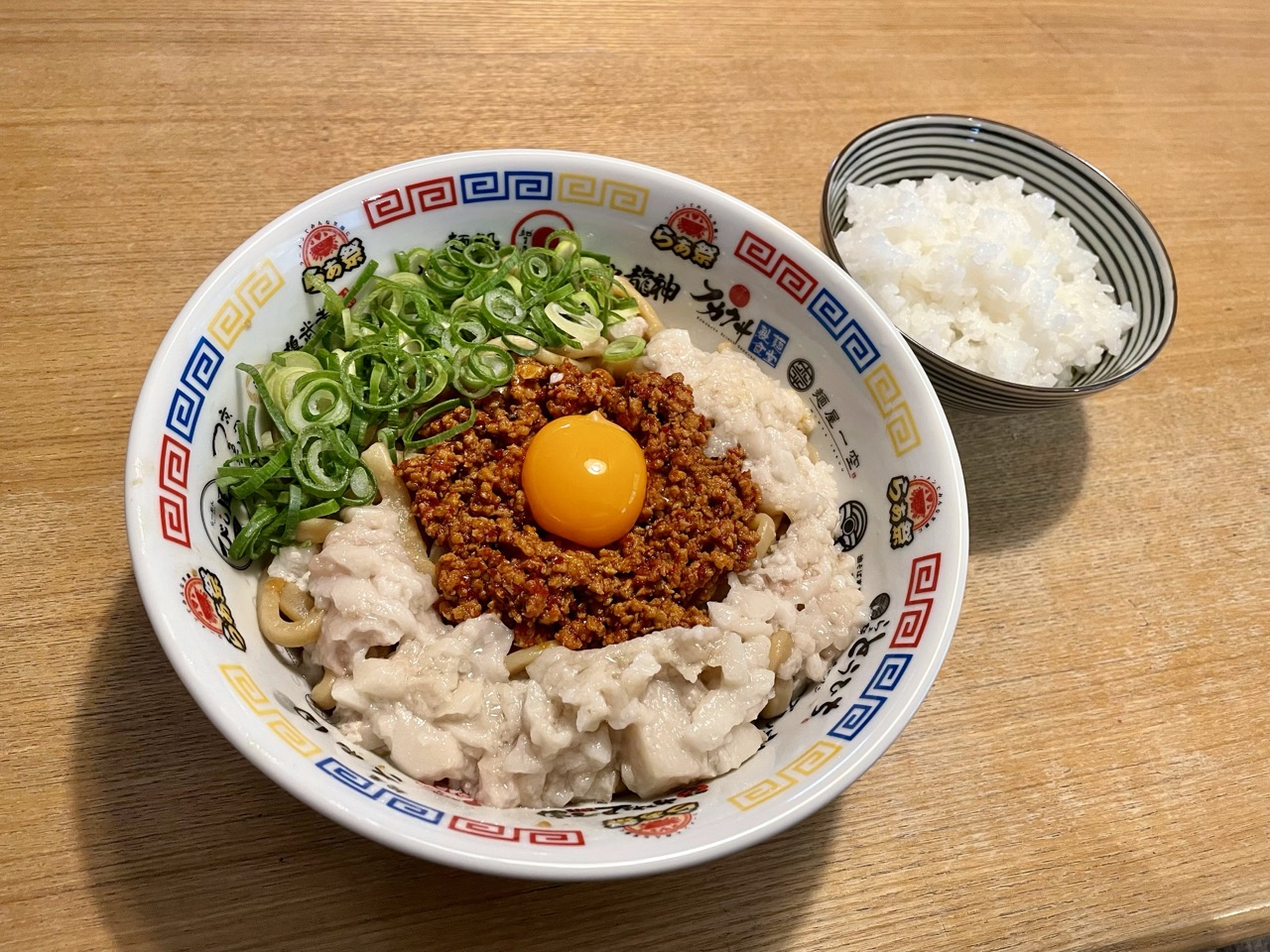 追加トッピングとしてネギと卵黄を添えました。