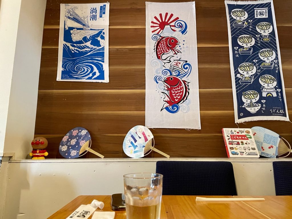 壁のてぬぐいの「うどん脳」とは香川県のご当地キャラクターで、ゆるキャラグランプリの優勝経験もあるんだとか。