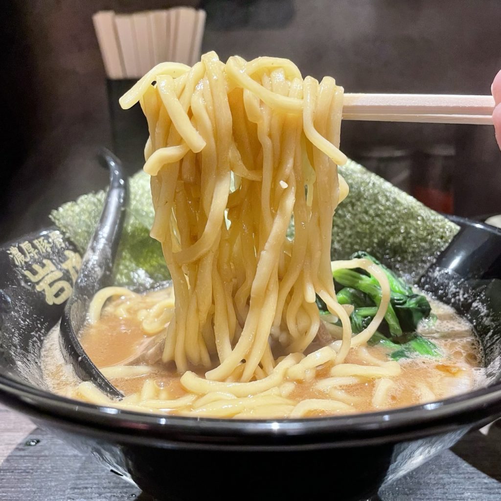 THE 家系ライクな麺はモチモチ食感で美味しい。