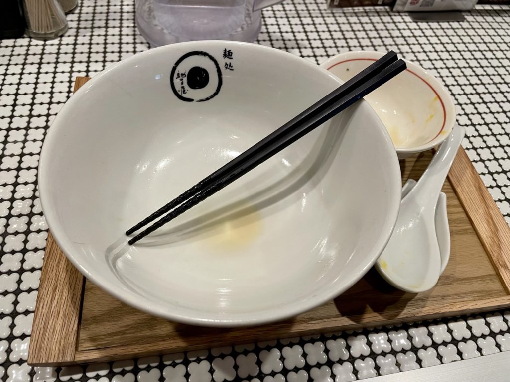 食べながらだいぶスープを飲んでしまいましたが、この時のために温玉の黄身を温存していた自分を褒めたい。