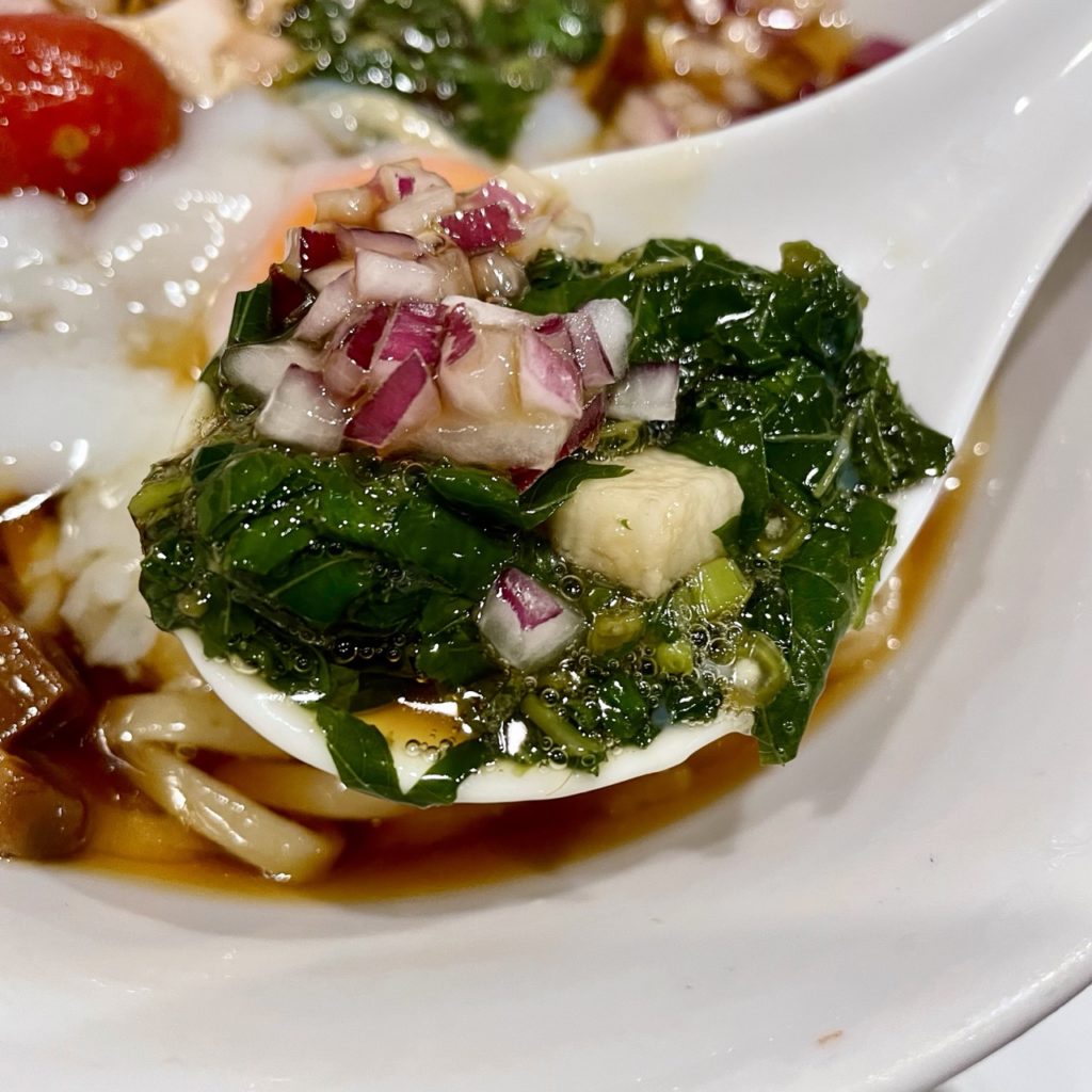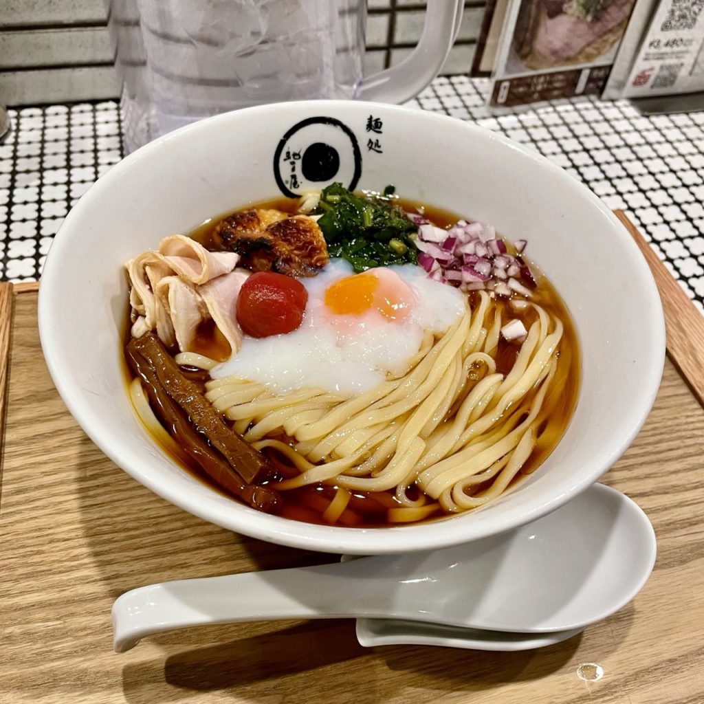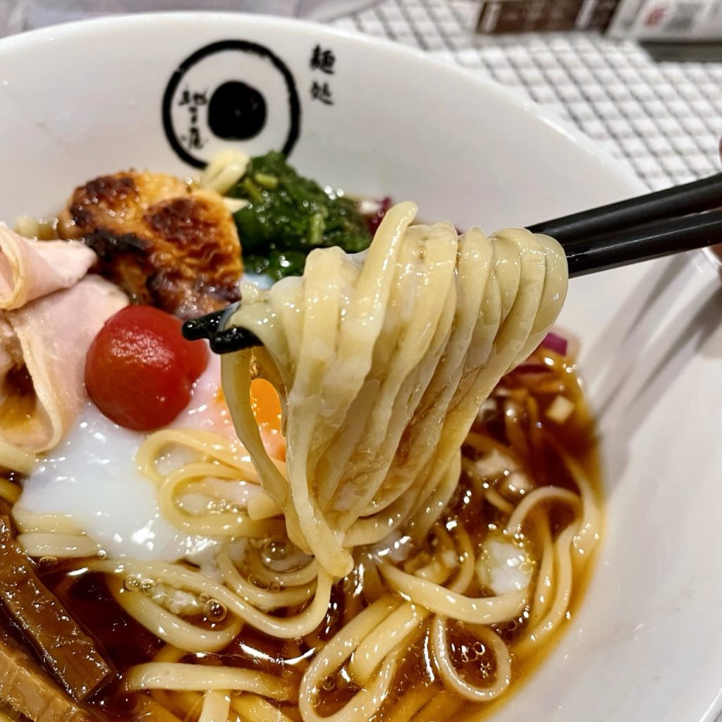 昆布のとろみがついた出汁にビターな醤油を合わせた旨味の強いスープ!