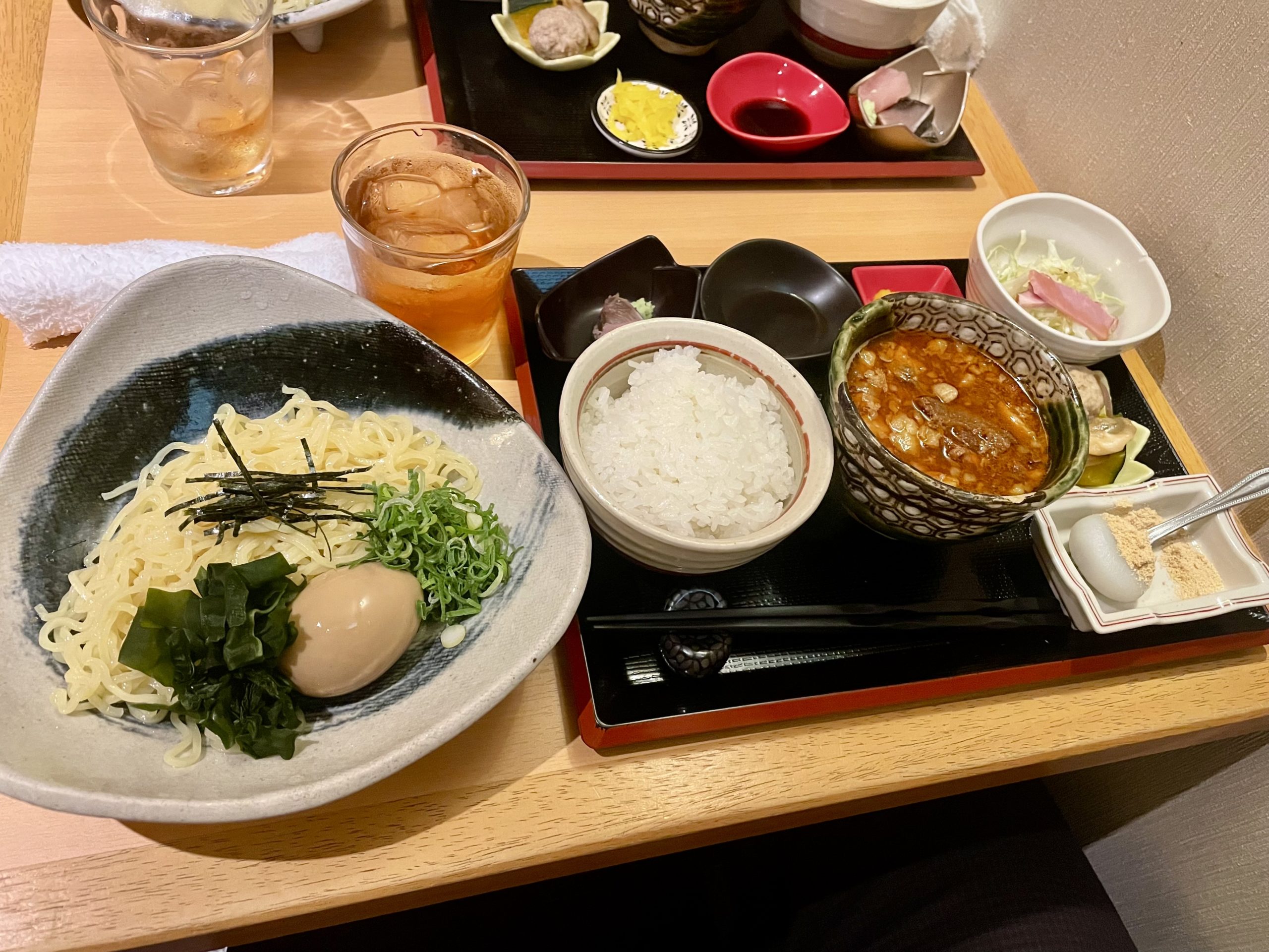 ごはん・つけ麺・サラダ・お刺身・漬物・小鉢、さらにはデザートまで!