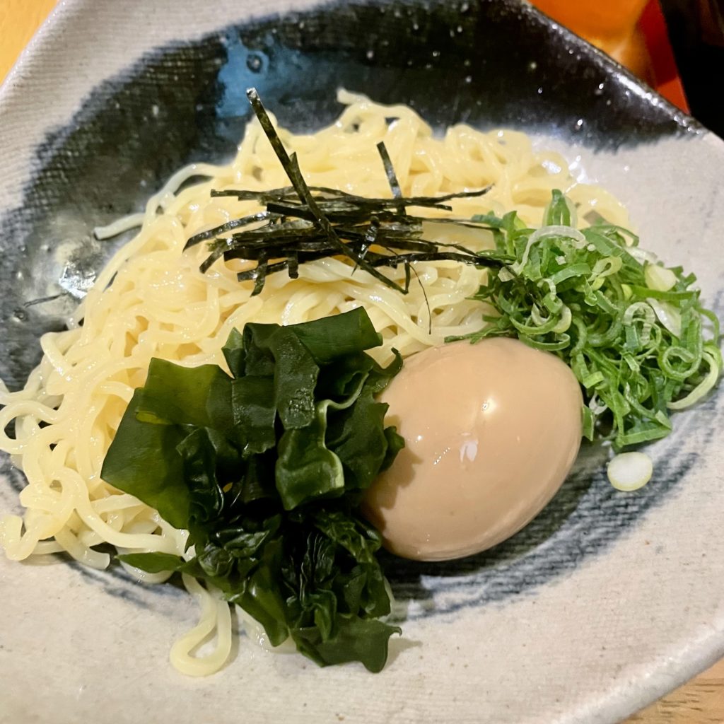 麺側には味玉・わかめ・ネギ・刻み海苔。