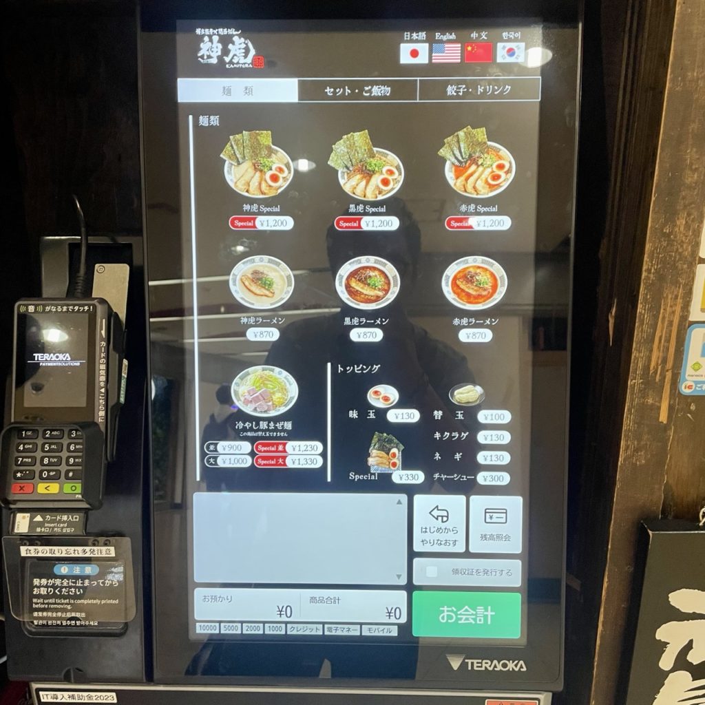 ラーメンの味は神虎ラーメン、マー油の黒虎ラーメン、辛い赤虎ラーメンの3種類。