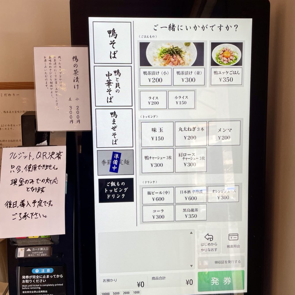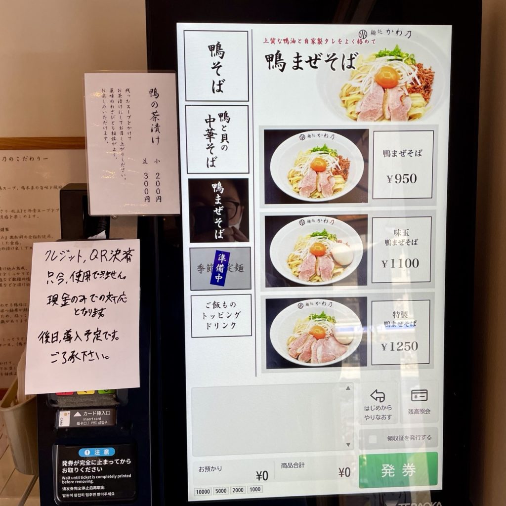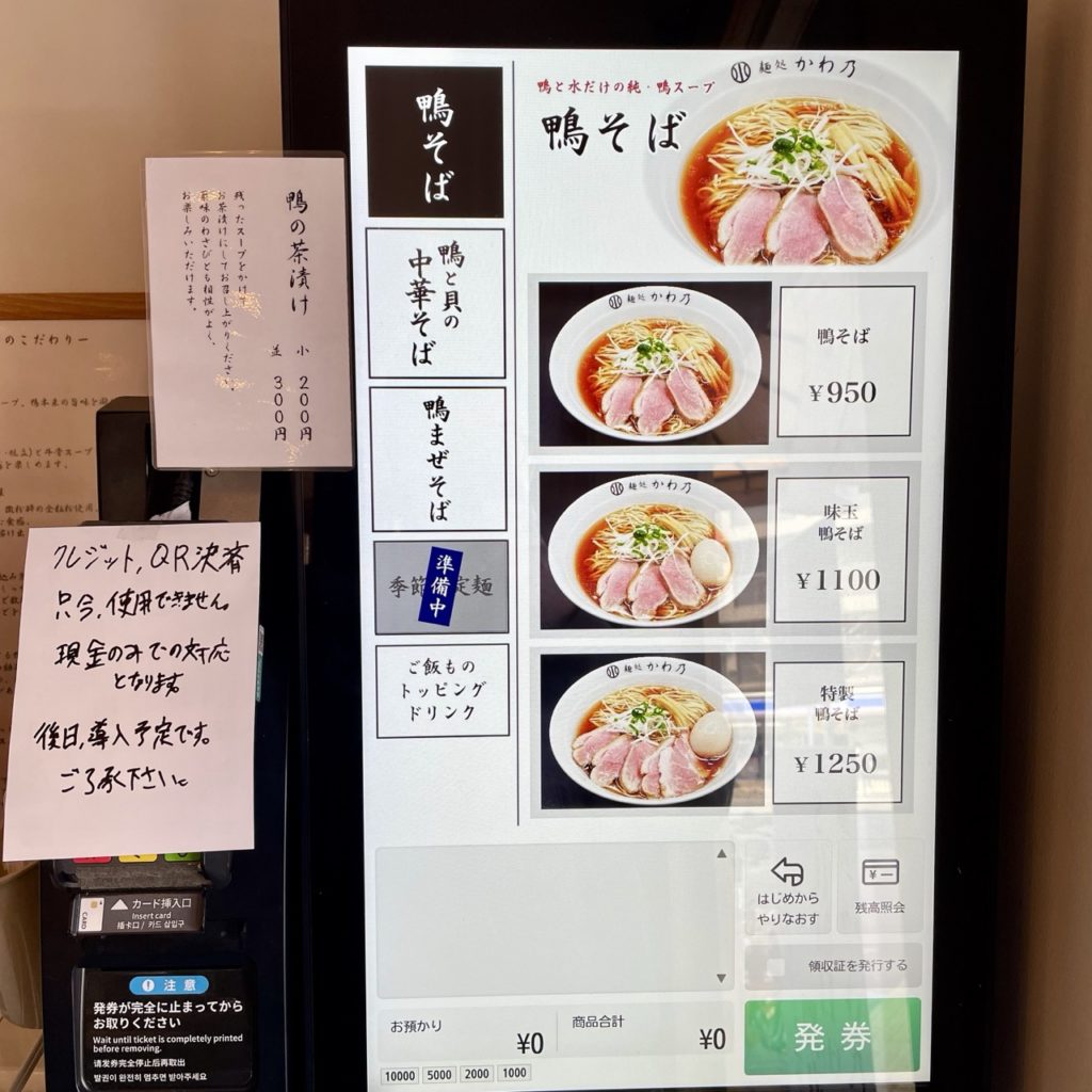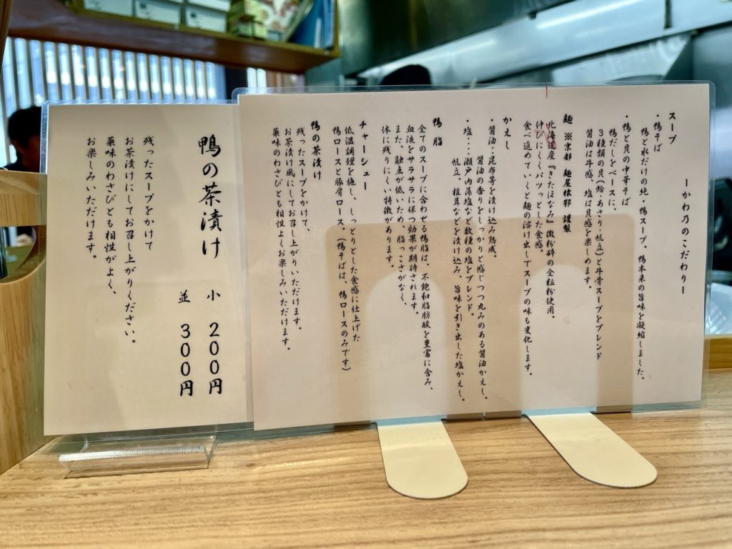 メニューは100%鴨出汁の鴨そば、鴨と貝の中華そば、そして鴨まぜそばの3種類。今後は限定メニューもリリースしていくんだそうです。