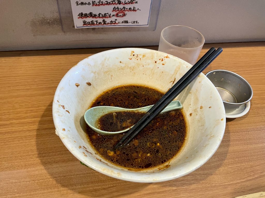 漆黒と言ってもいいほどの真っ黒なスープは、ペロッと舐めるとガツンとくる甘み