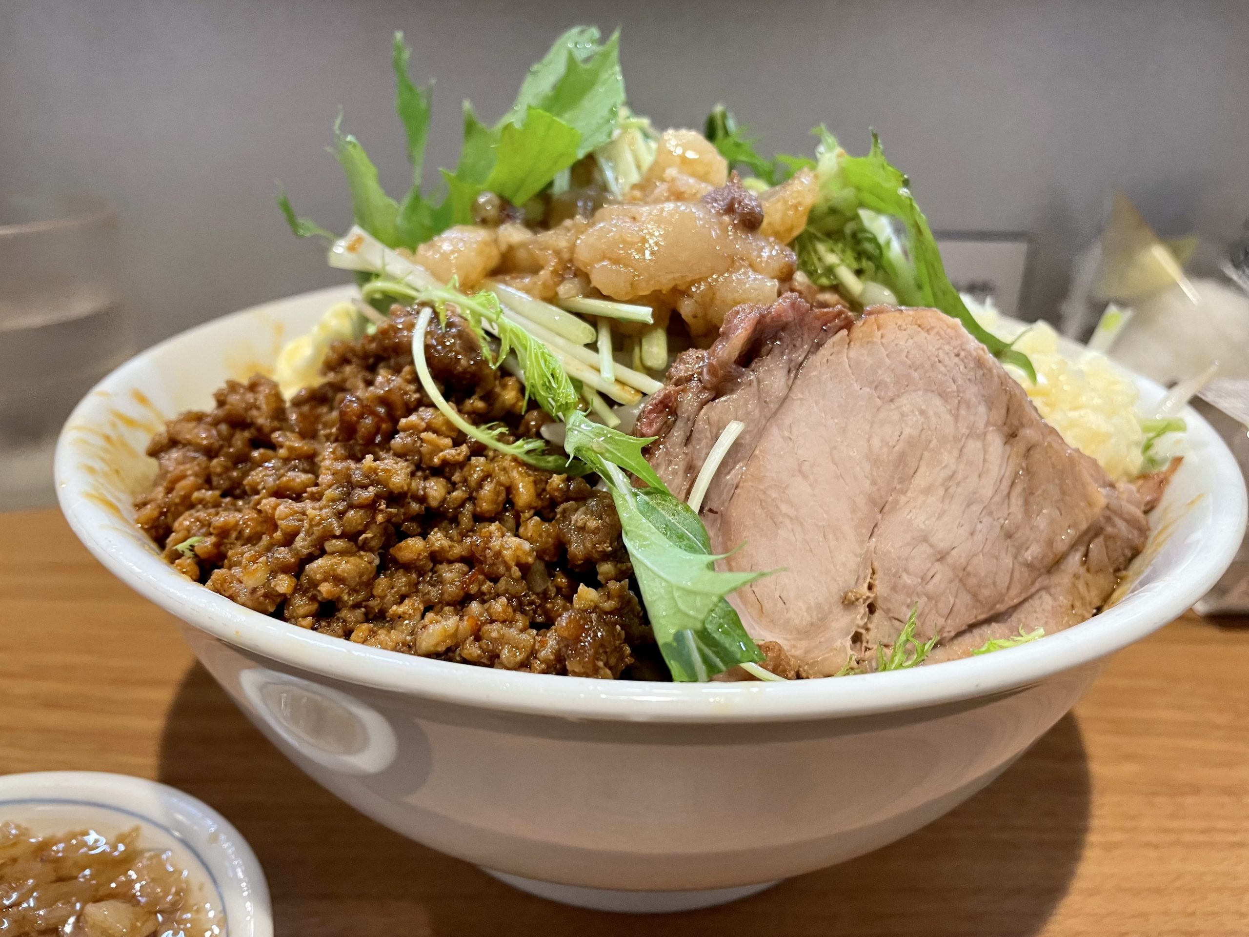 底に沈んでいたミンチをよく混ぜて麺と絡めて食べます。