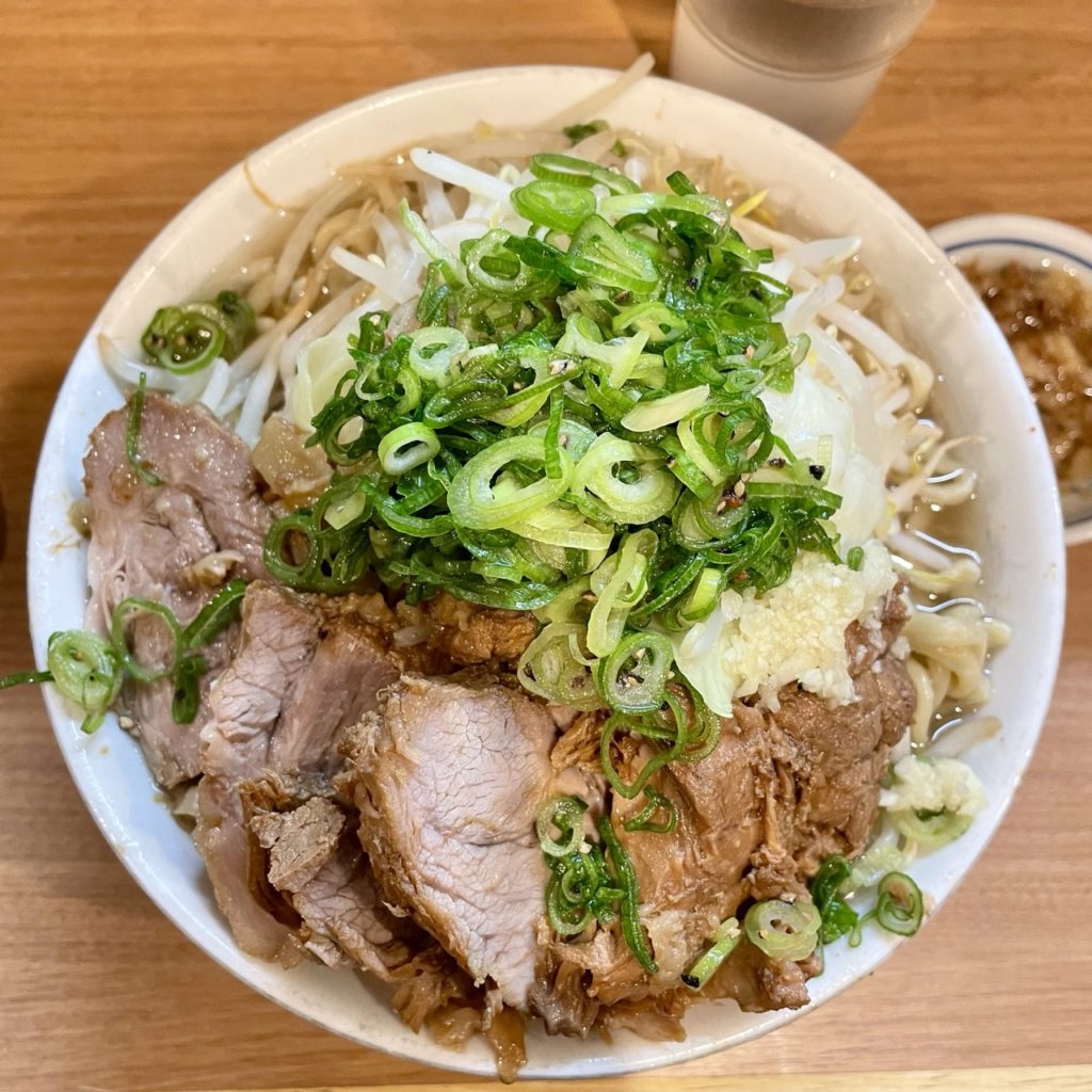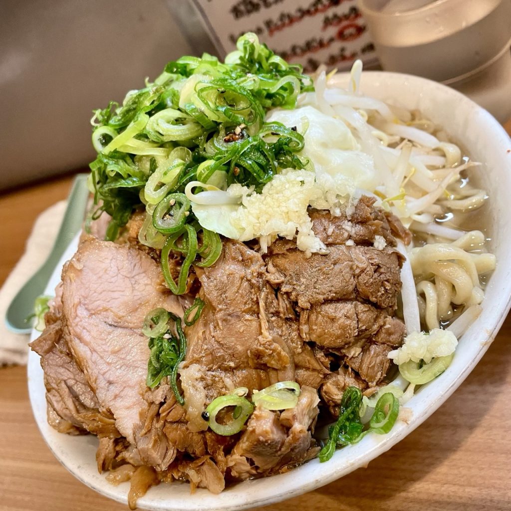 こんもりと盛られたヤサイにドバッと塩ネギ!