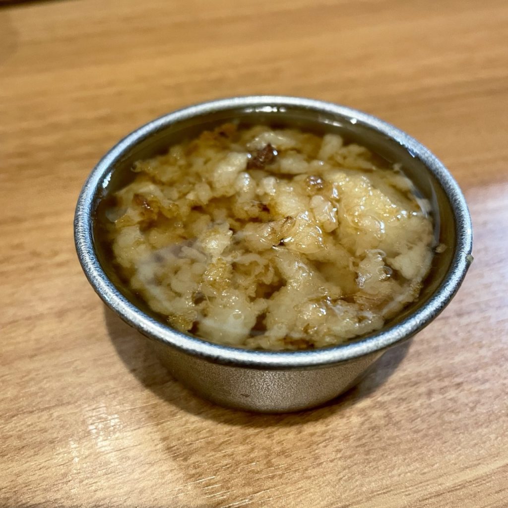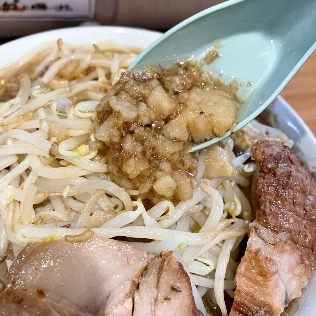 マシアブラは小皿、マシマシアブラはカップで提供。粒が多くて良いアブラでした!
