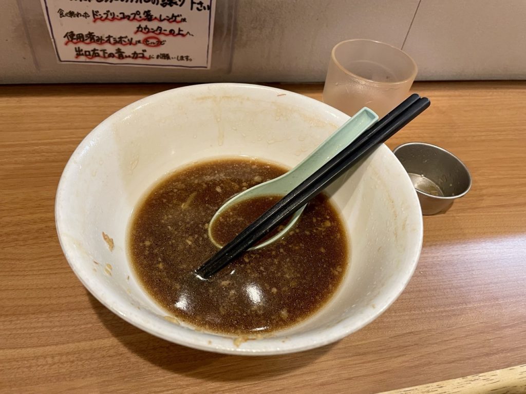 僕らの後のロットの麺がちょうど茹で上がったぐらいのタイミングで、一人居残りで慌てて退店して行った人がいたけど、キロ超えの麺増しでもしてたのかな?