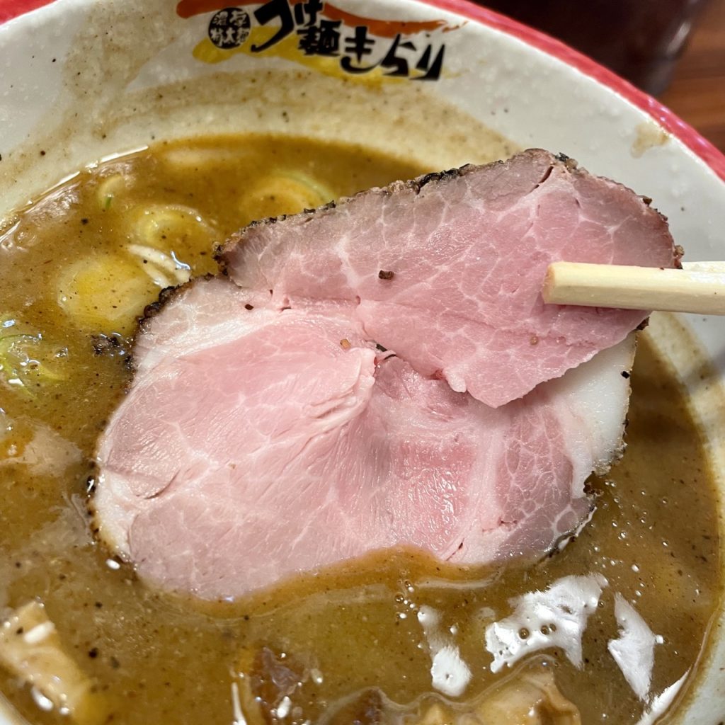 つけ汁の中にはバラ肉のコロチャーがゴロゴロ!