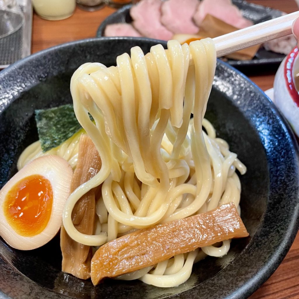 これ系のつけ麺って甘い味付けのやつも多い中、こちらはほどよいビターさもあり、かなり好みの味わいですね!