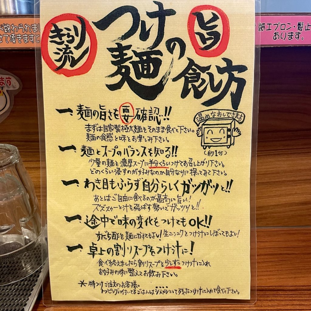 各席につけ麺のおすすめの食べ方があります。