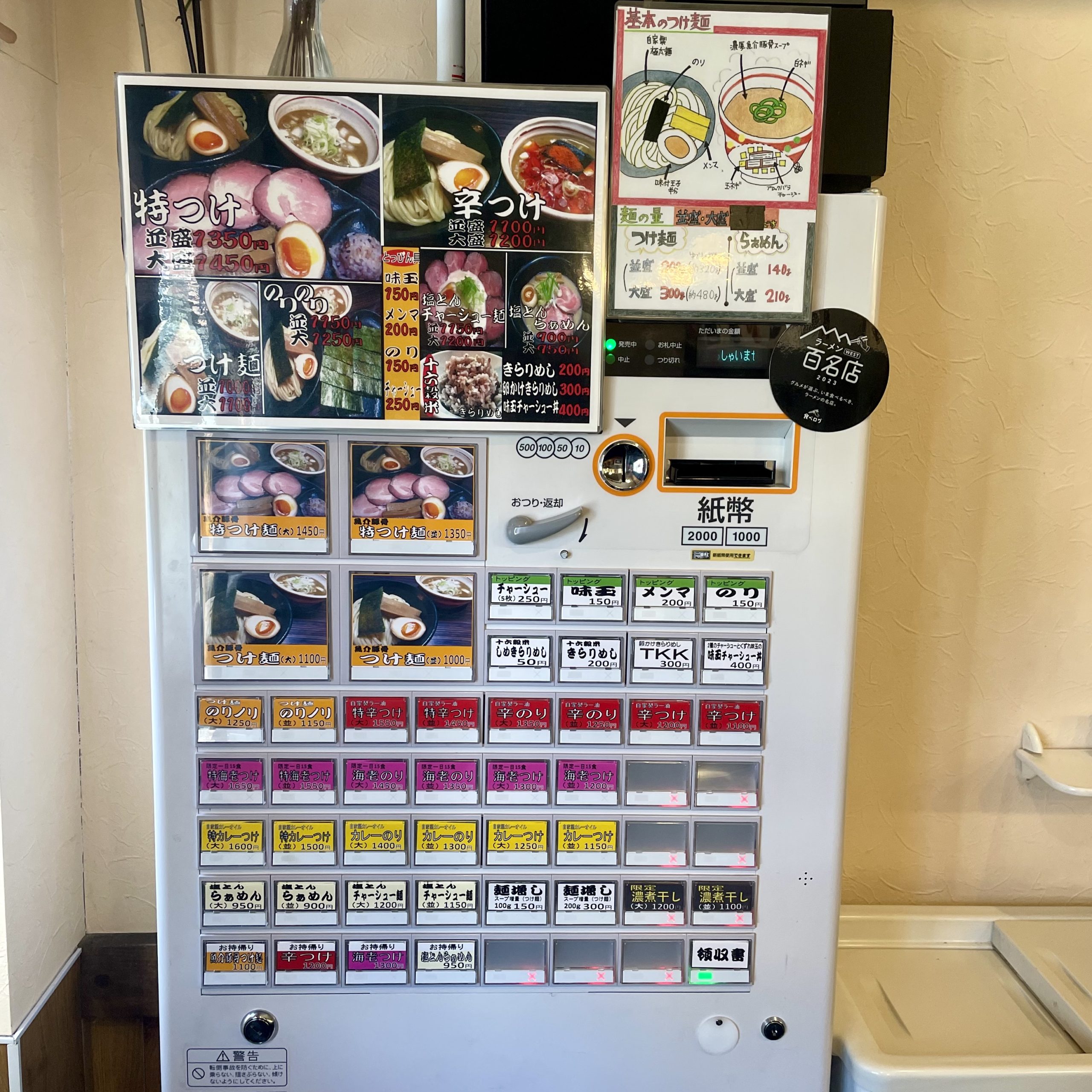 初めてなのでまずは左上の法則に則り、特つけ麺の並をチョイス!