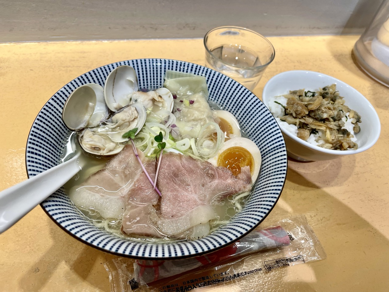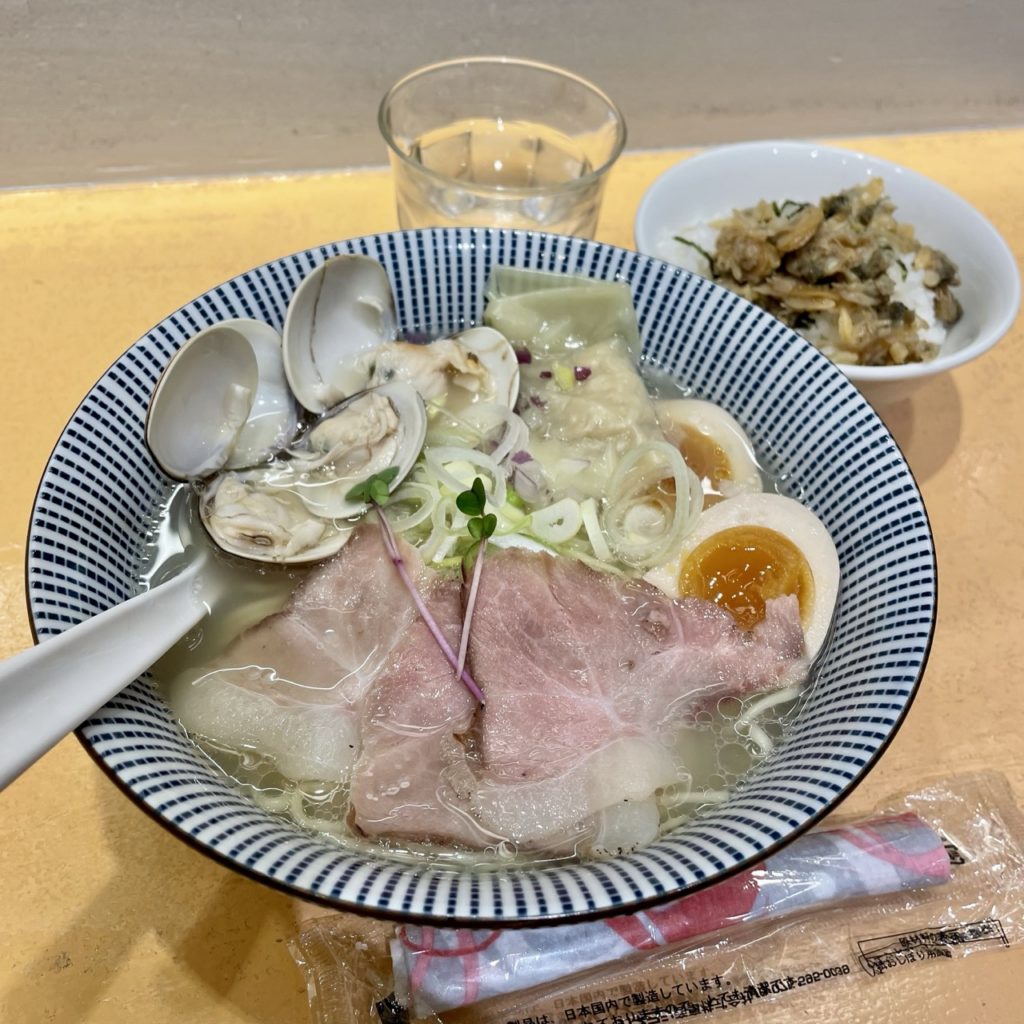 メニューは貝白湯の貝だし麺、貝出汁と牛の中華そば、はまぐり出汁の蛤らぁ麺。