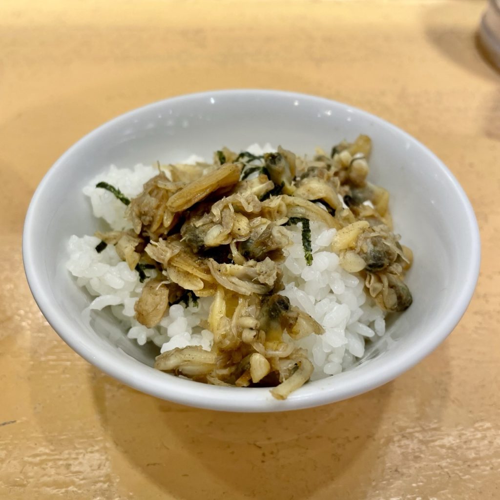 サイドメニューの貝のしぐれ煮ご飯は並で300円、小で200円と大変リーズナブルです。