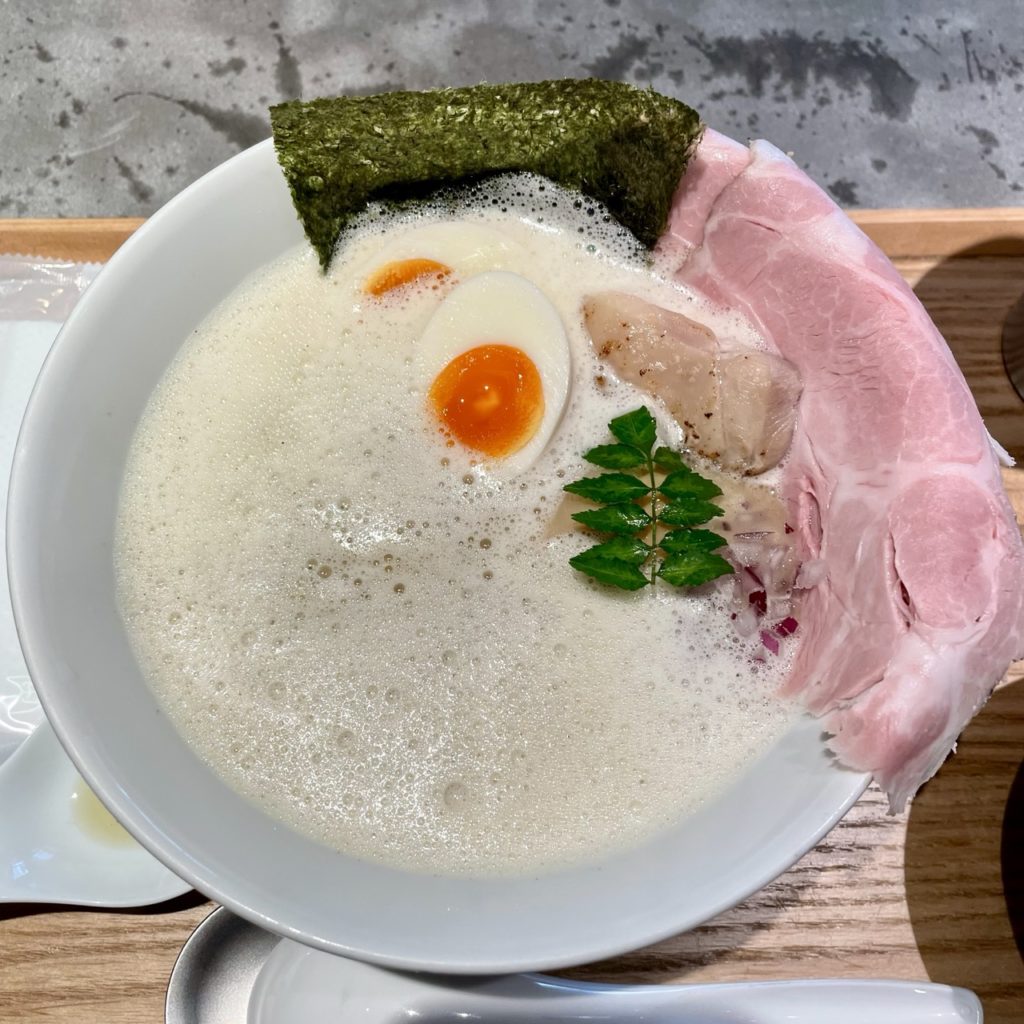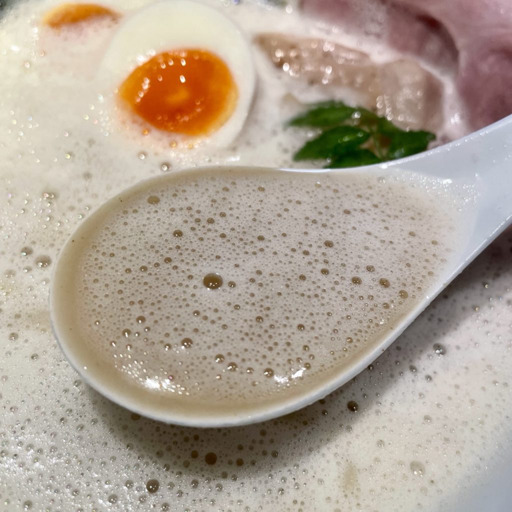 ブレンダーで泡立てられたスープは、クリーミーかつマイルドな鶏白湯スープ!