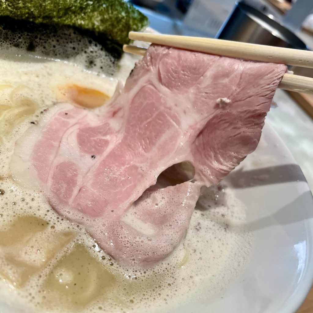 薄切りのレアチャーシューが2枚。