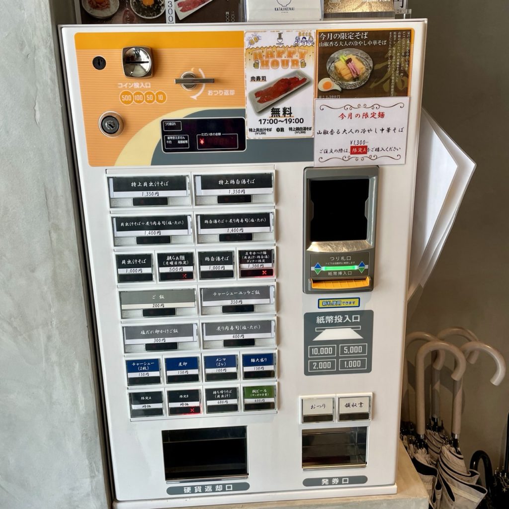 麺量が半玉か1玉から選べ、券売機にボタンはないのでスタッフの方に口頭注文でOKです。