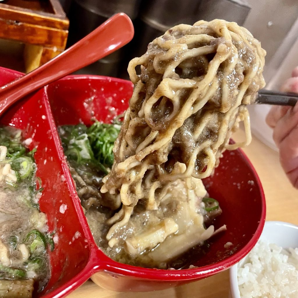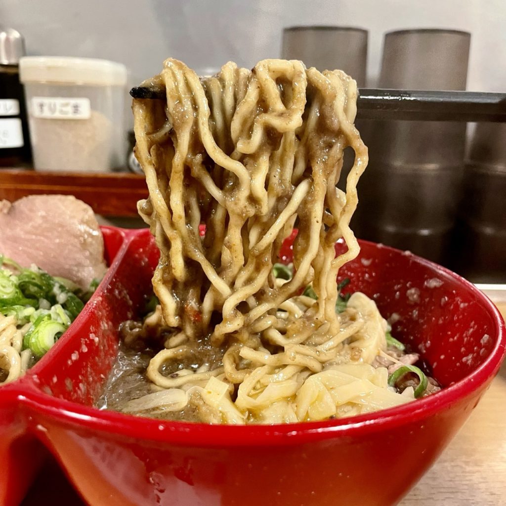 ドロっと濃厚なスープはビターな味わいで旨い!