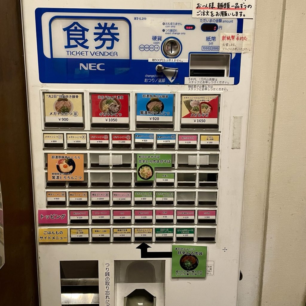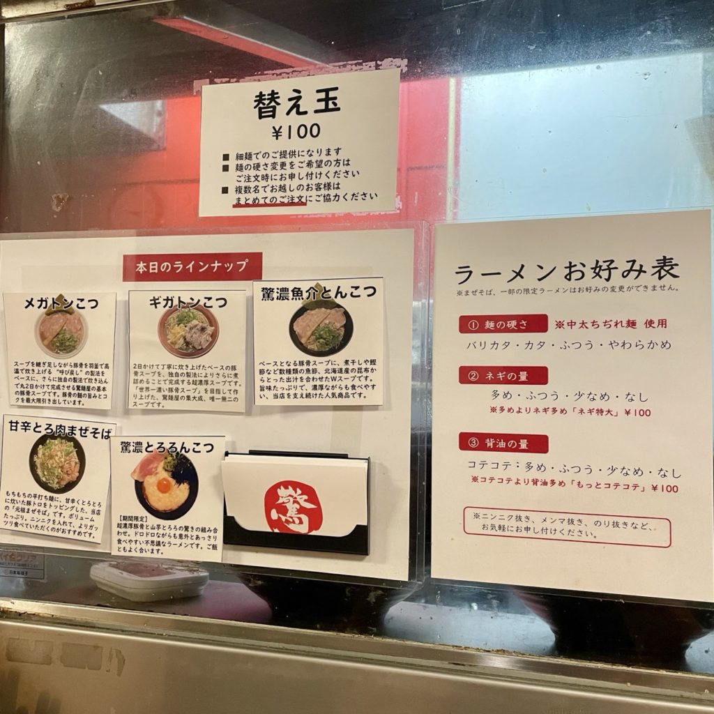食券提出時に麺の硬さ・ネギの量・背脂の量をお好みとして申告することができます。