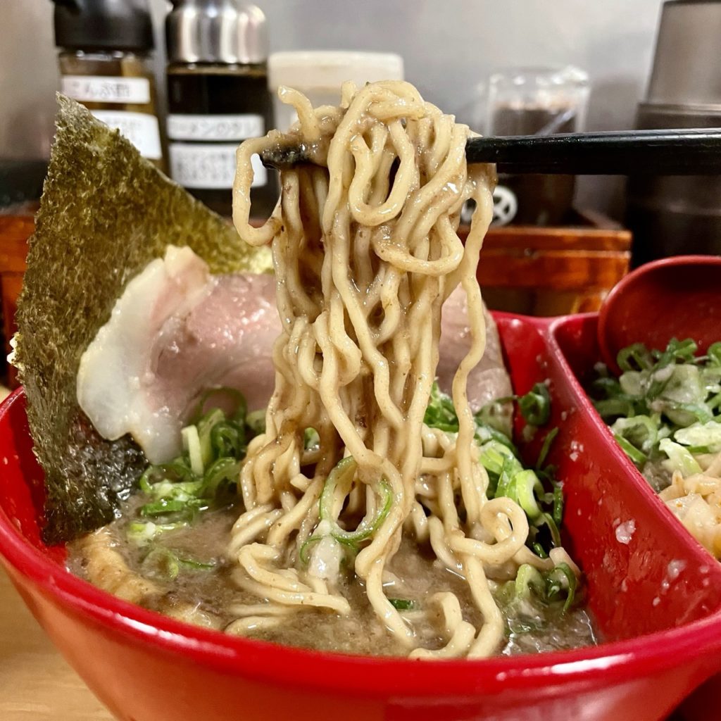 低加水麺ですけど、汁を吸って伸びやすいってこともこのスープならあまりないでしょうね。