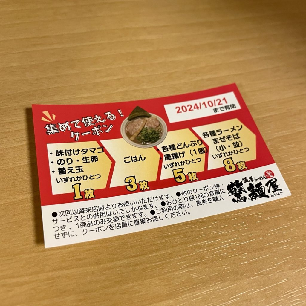 8枚ためるのはなかなか骨ですが、1枚で替玉無料ってのは素晴らしいですね!