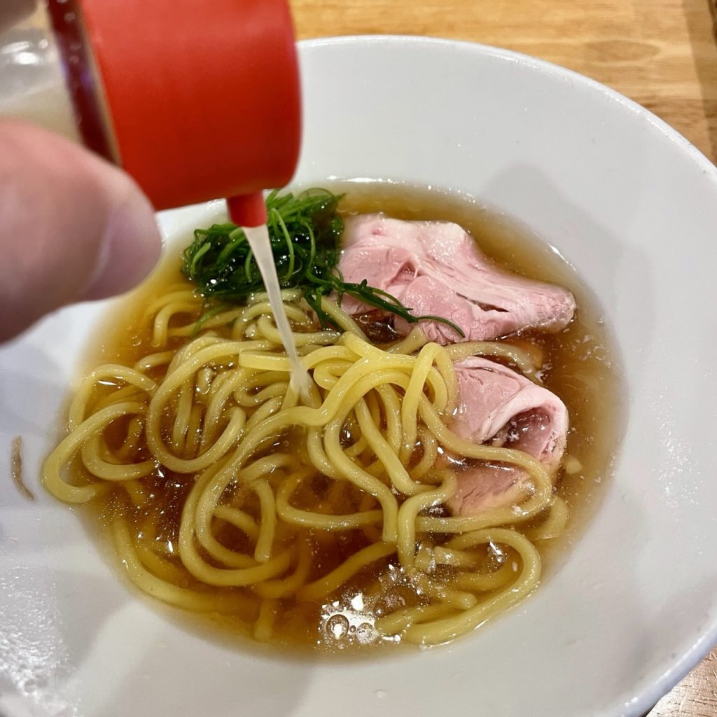 僕冷やしラーメンの最後はセルフ出汁茶漬けって決めてるんですよね。