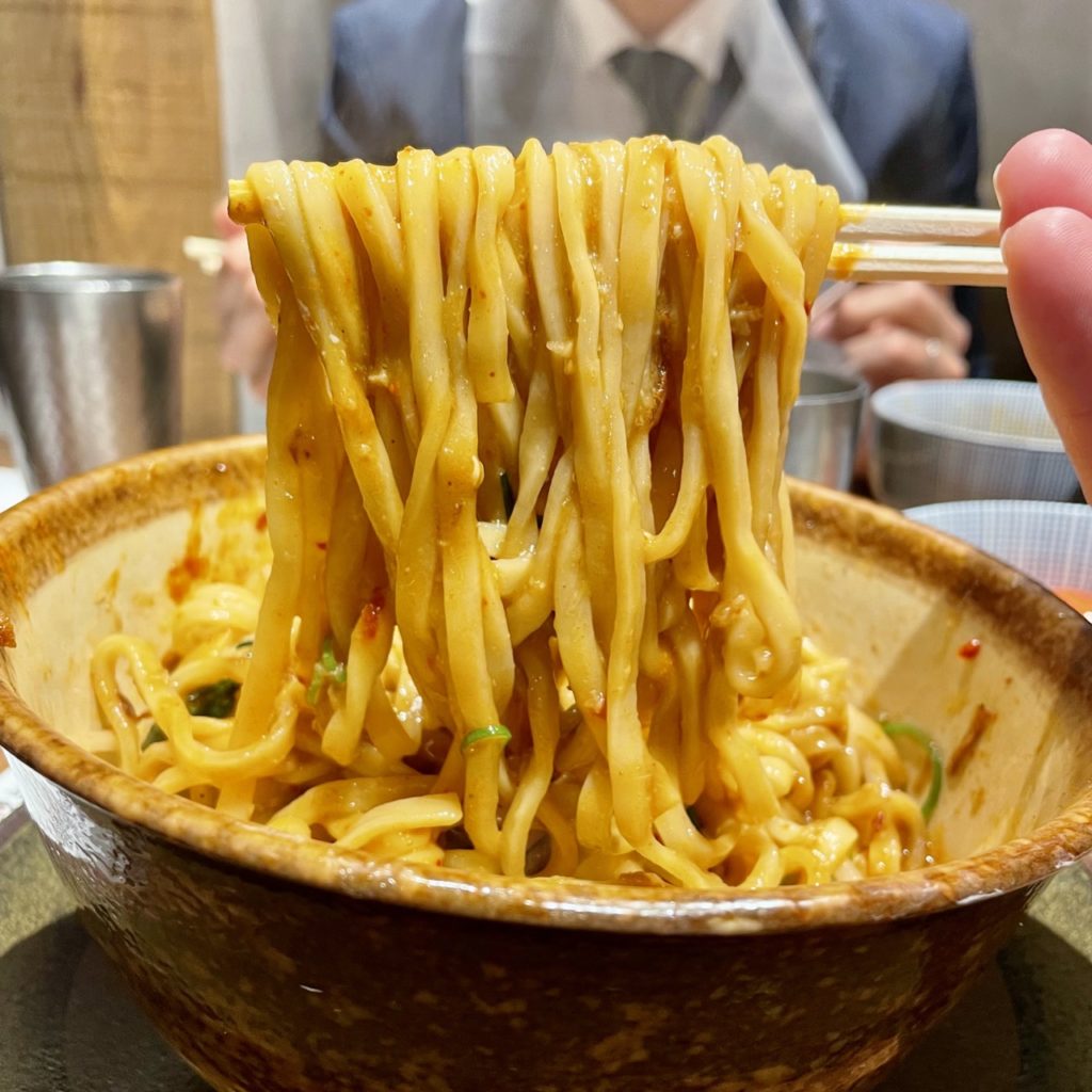 麺はもっちりした平打ち麺!