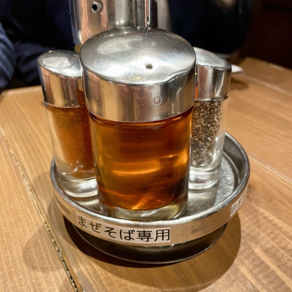 卓上にはまぜそば用の調味料。