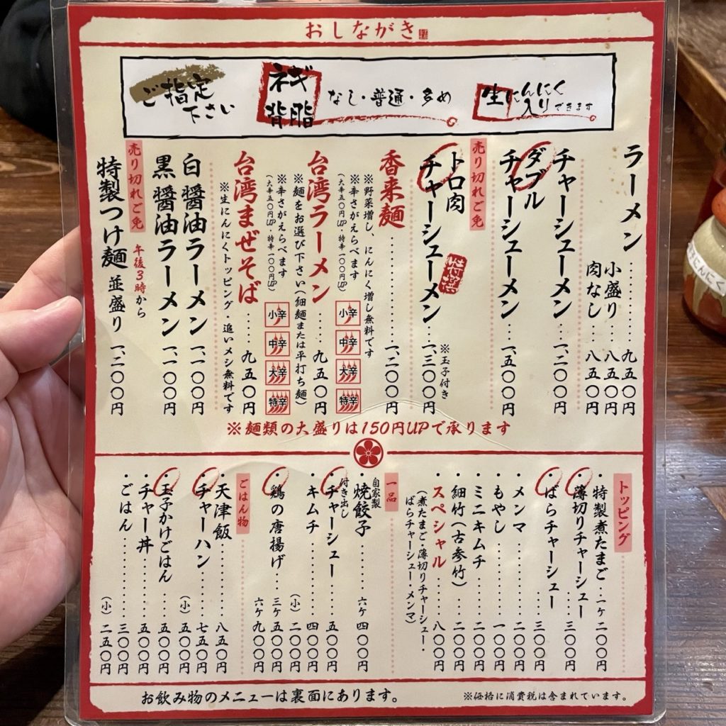 一番人気はやっぱりラーメンだと思いますが、個人的に香来麺がかなりおすすめです。