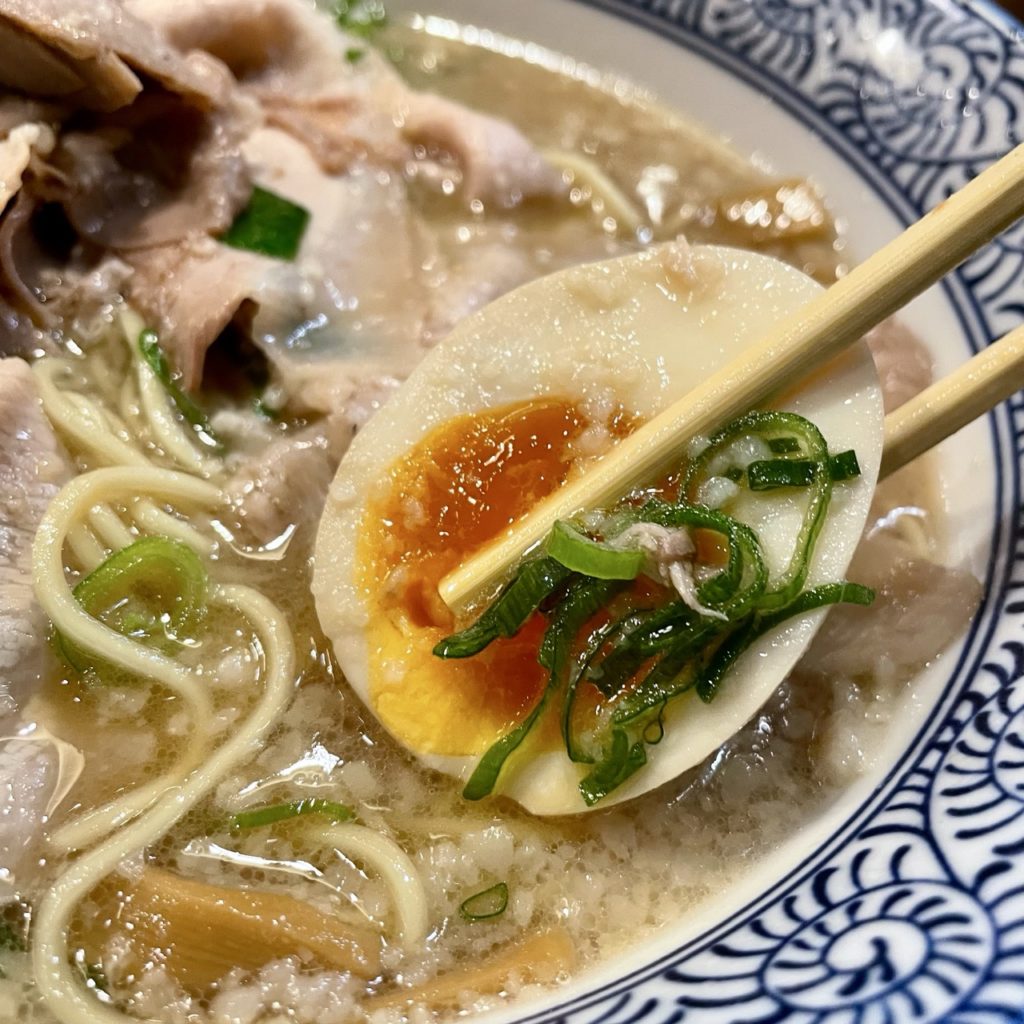 トロ肉チャーシューメンは味玉が半玉付いてくる仕様で大変ありがたい。