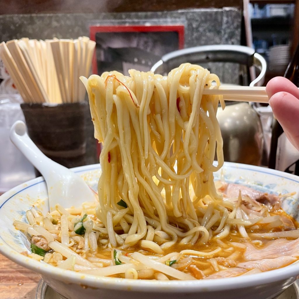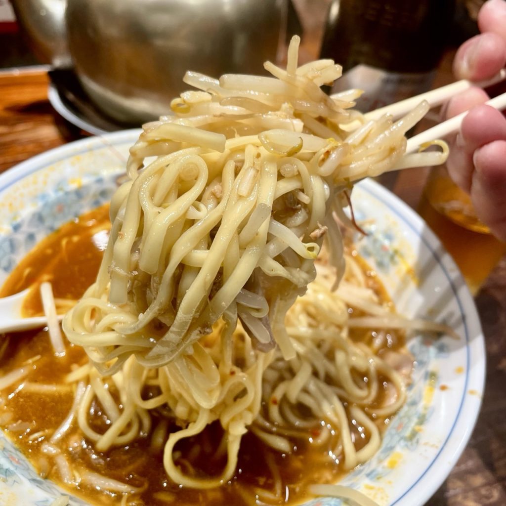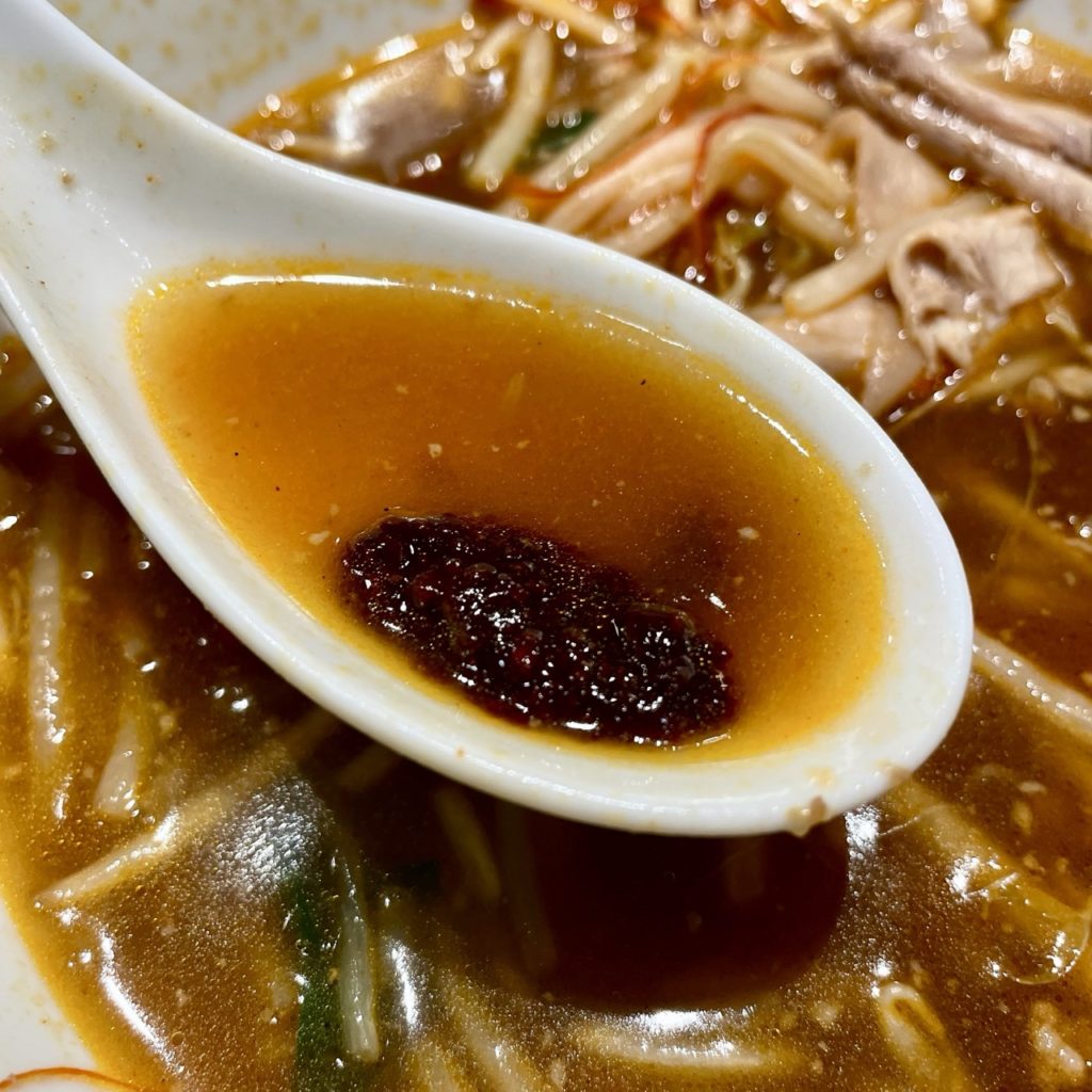 スープは鶏ベースかな?ほどよいピリ辛の奥に甘さがある。みりん系じゃなくて、野菜の甘みみたいな自然なやつ。