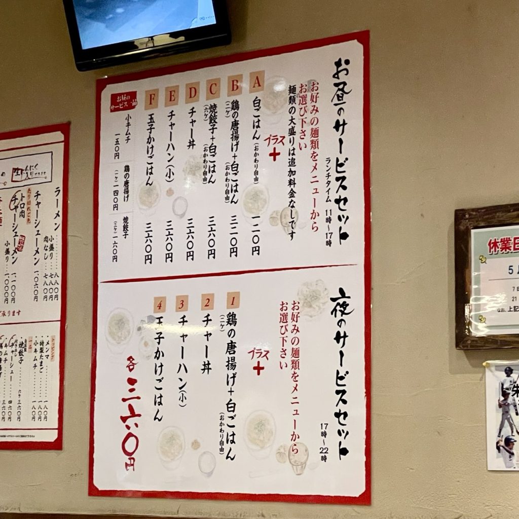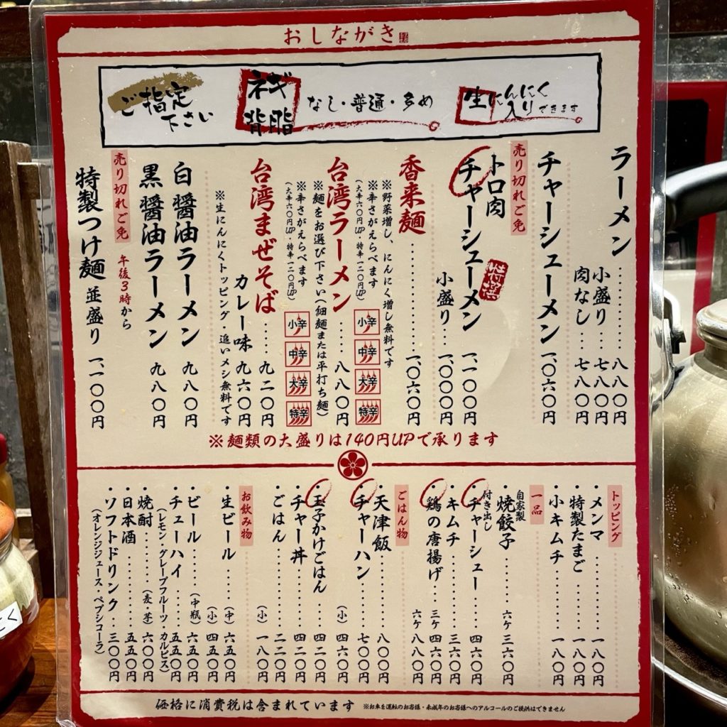 メニューはラーメンの味だけでも7種類あり、アルコールや一品メニューも充実しています。