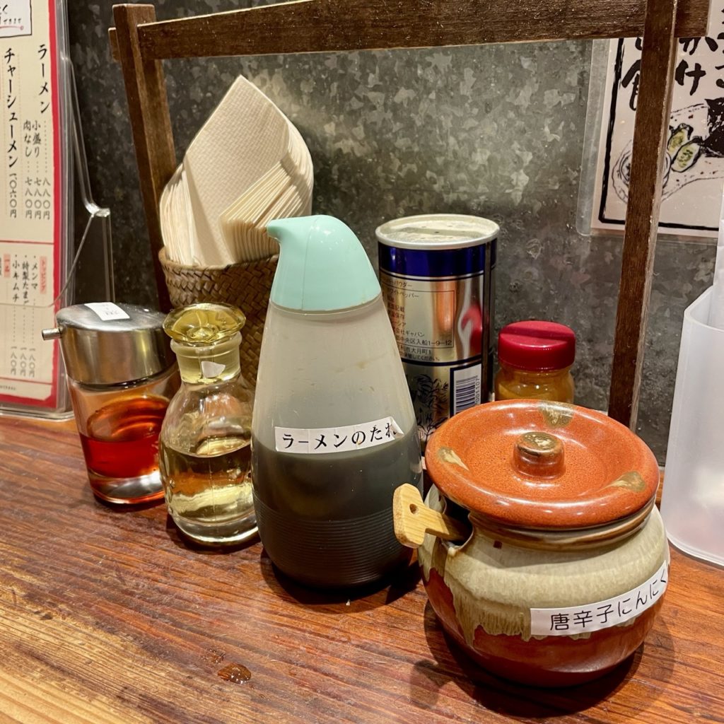 台湾まぜそばがあるお店には高確率でお酢とかラー油がありますよね。