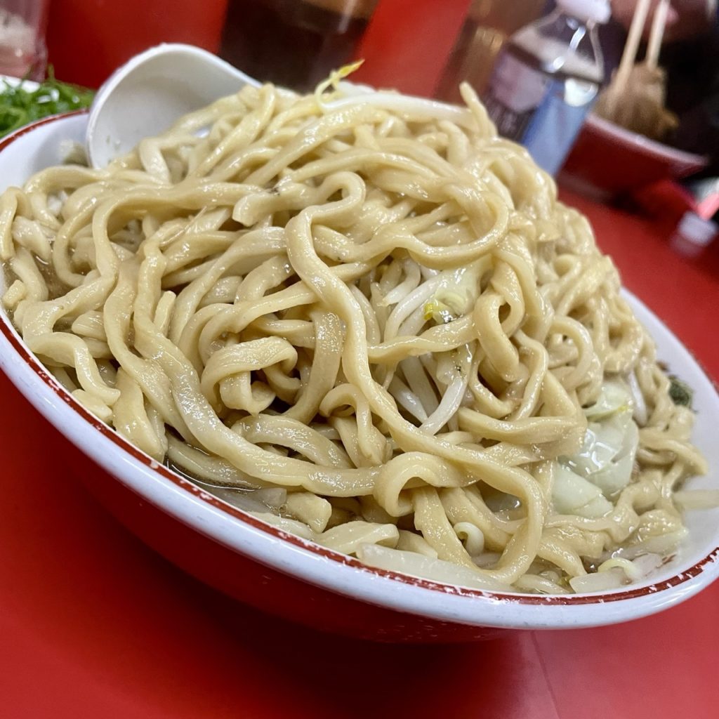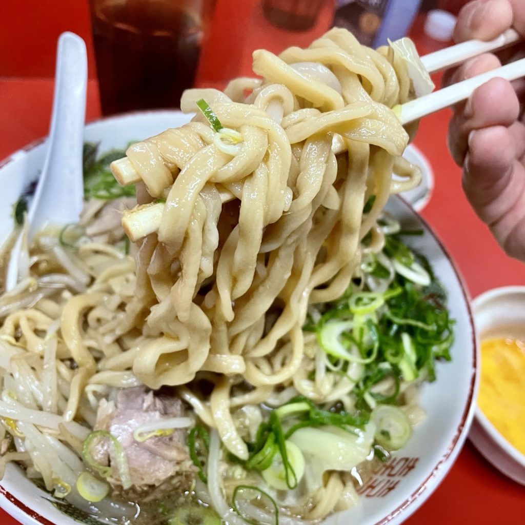 ラーメン並の麺量は体感200gぐらいですかね〜。